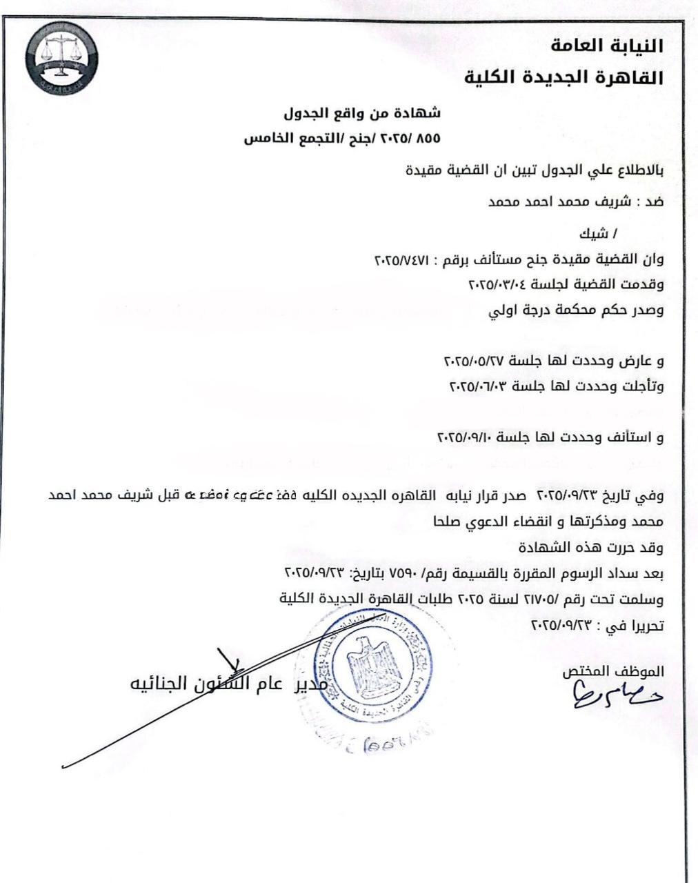 عماد زيادة وصورة من شهادة النيابة العامة