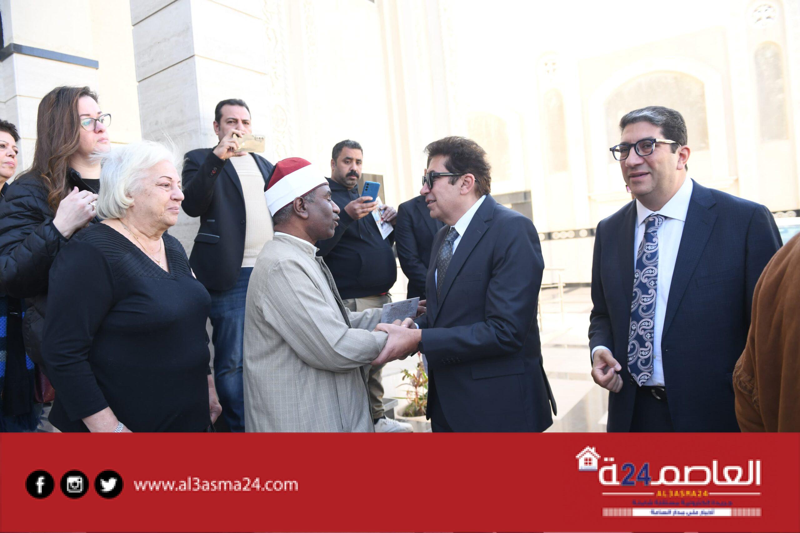 وحرص الفنان هاني رمزي على التواجد مبكرًا لاستقبال المعزين، وكان من أبرزهم الفنان ليلى عز العرب، حيث سيطرت حالة من الحزن على الأجواء داخل الكنيسة