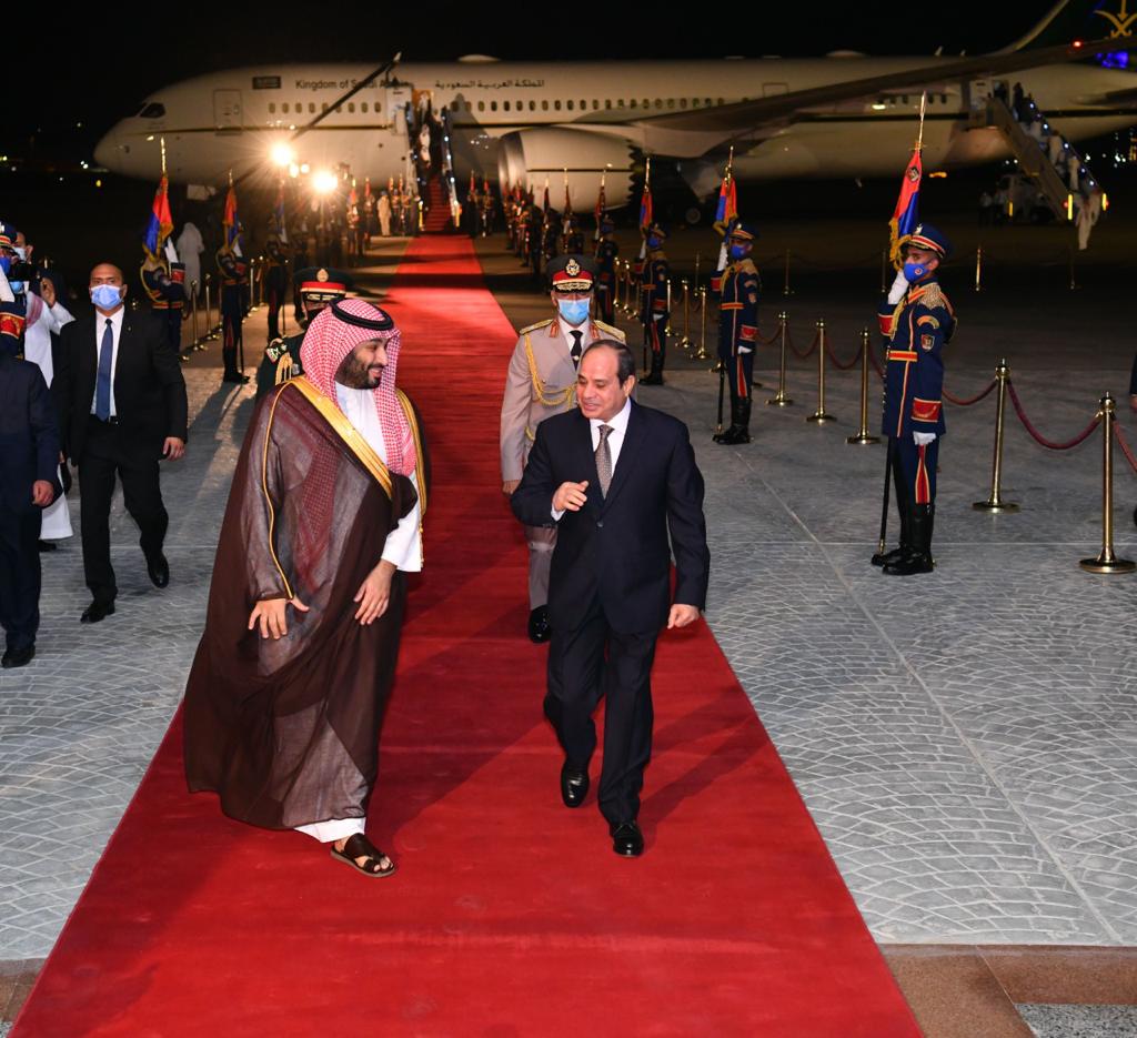 استقبل الرئيس عبد الفتاح السيسي مساء اليوم الاثنين بمطار القاهرة صاحب السمو الملكي الأمير محمد بن سلمان بن عبد العزيز ولي عهد المملكة العربية السعودية