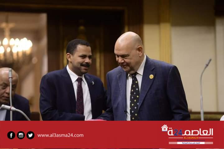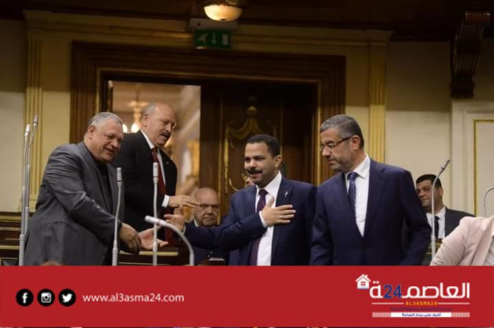 وصافح النائب أشرف رشاد الشريف ممثل الأغلبية البرلمانية بمجلس النواب أعضاء مجلس عقب عودته من أداء مناسك العمرة وإجازة العيد