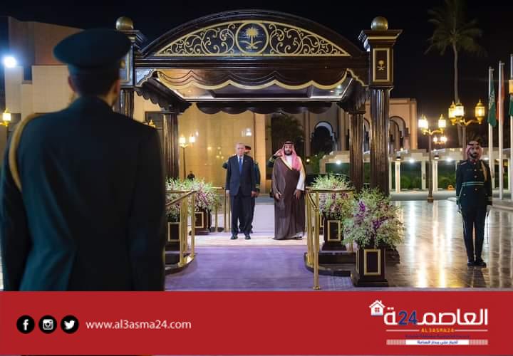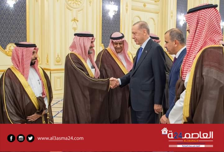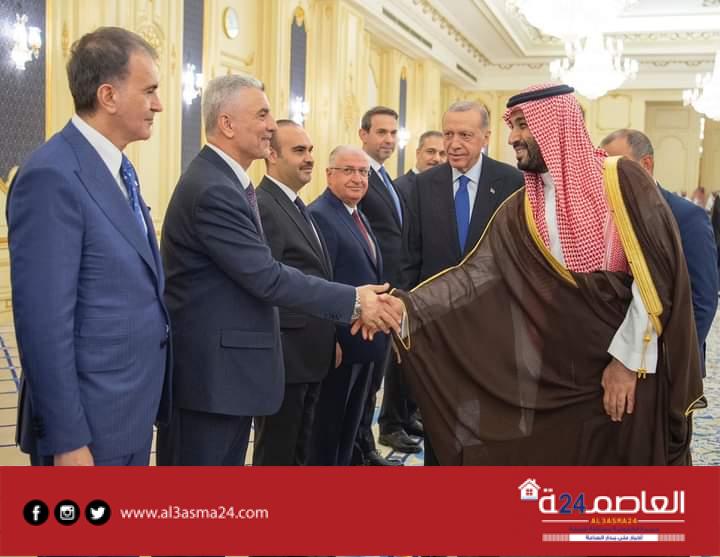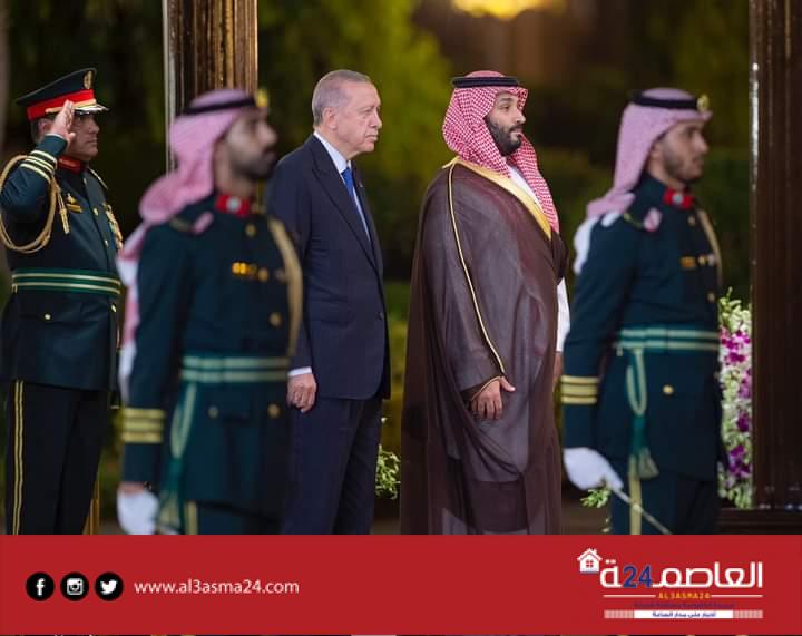 عقد ولي العهد السعودي، الأمير محمد بن سلمان مع الرئيس التركي رجب طيب أردوغان في الديوان الملكي في قصر السلام بجدة، جلسة مباحثات رسمية