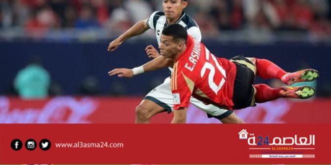 واصل الأهلى الضغط على الفريق المكسيكى ولعب الشحات كرة عرضية ارتقى لها وسام أبو على وسددها لكنها جاءت بعيدًا عن الشباك، وتوقف المباراة لإصابة أمام عاشور وتلقى العلاج واستكمل المشاركة في اللقاء قبل أن يتعرض أكرم توفيق لإصابة أخرى بسيطة لم تمنعه من استكمال المشاركة في اللقاء.