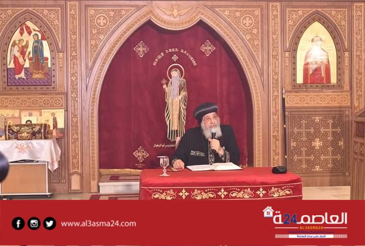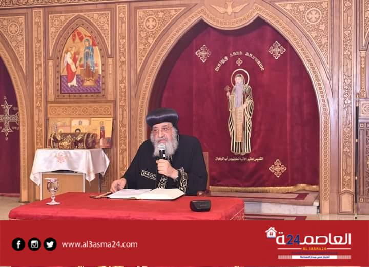 ألقى قداسة البابا تواضروس الثاني عظته الأسبوعية في اجتماع الأربعاء مساء اليوم، من كنيسة القديس الأنبا أنطونيوس بالمقر البابوي بالكاتدرائية المرقسية بالقاهرة، وبُثت العظة عبر القنوات الفضائية المسيحية وقناة C.O.C التابعة للمركز الإعلامي للكنيسة على شبكة الإنترنت