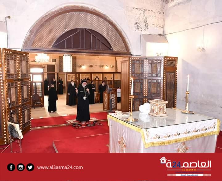 واستقبل مجمع رهبان الدير قداسة البابا بالألحان، وتوجه قداسته إلى الكنيسة الأثرية حيث صلى صلاة الشكر وتبارك من رفات قديسي الدير، ثم عقد جلسة في قاعة الاجتماعات، مع مجمع الآباء الرهبان وألقى عليهم كلمة روحية ربط خلالها بين الآية الخامسة من الأصحاح الأول من رسالة القديس بولس الرسول الأولى لتلميذه تيموثاوس، ونظيرتها من الأصحاح الأخير من الرسالة الثانية لتلميذه تيموثاوس أيضًا، وعقب الكلمة استمع لأسئلة الآباء الرهبان وأجاب عليها.