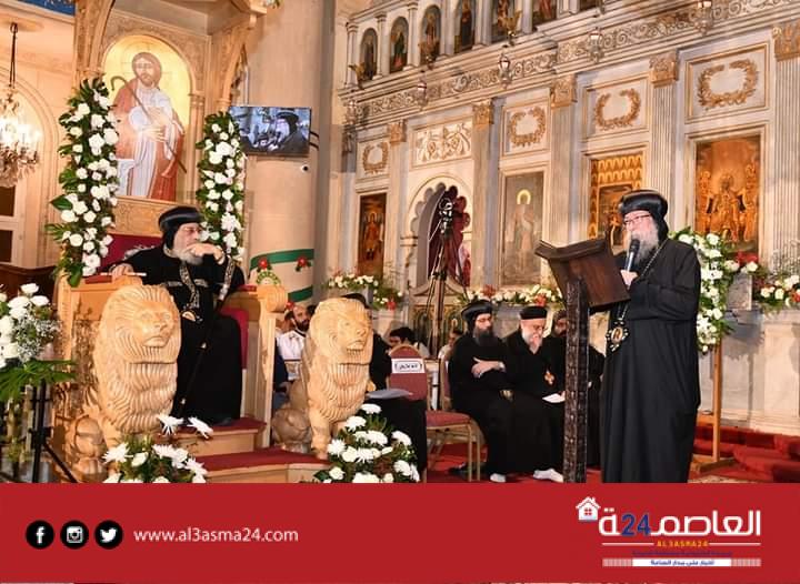 صلى قداسة البابا تواضروس الثاني صلوات رأس السنة الميلادية ٢٠٢٤ في الكاتدرائية المرقسية بالإسكندرية