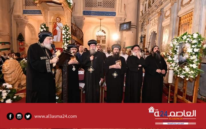 صلى قداسة البابا تواضروس الثاني صلوات رأس السنة الميلادية ٢٠٢٤ في الكاتدرائية المرقسية بالإسكندرية