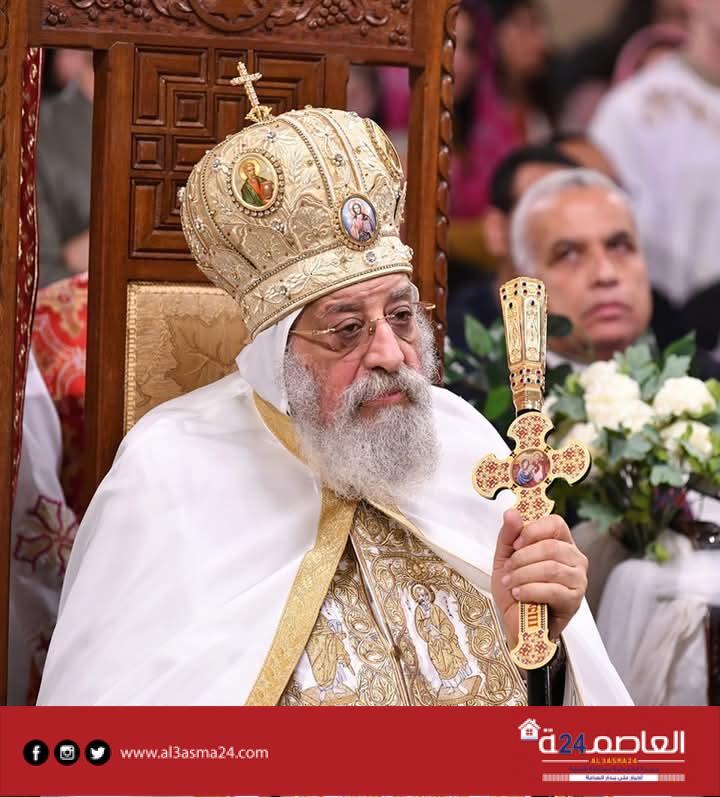 صلى قداسة البابا تواضروس الثاني، مساء أمس السبت، صلوات لقان وقداس عيد الغطاس المجيد (المسمى كنسيًّا عيد الظهور الإلهي أو الثيئوفانيا) بالكاتدرائية المرقسية بالإسكندرية