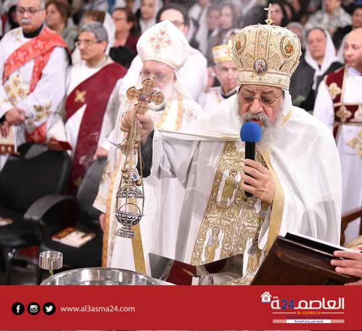 صلى قداسة البابا تواضروس الثاني، مساء أمس السبت، صلوات لقان وقداس عيد الغطاس المجيد (المسمى كنسيًّا عيد الظهور الإلهي أو الثيئوفانيا) بالكاتدرائية المرقسية بالإسكندرية