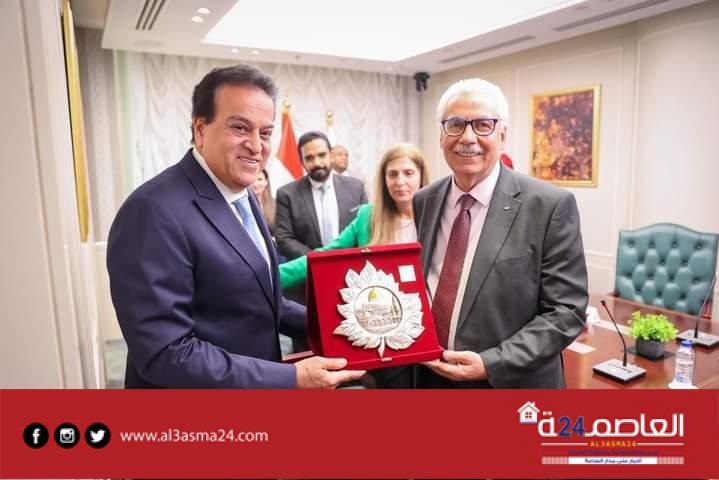 ومن جانبه، وجه وزير صحة فلسطين رسالة شكر للسيد الرئيس عبدالفتاح السيسي على ما قدمته مصر من مساعدات طبية وإنسانية للجانب الفلسطيني، مؤكدأ أن العلاقات المصرية الفلسطينية علاقات وثيقة وراسخة تدعمها إرادة سياسية وشعبية ممتدة عبر التاريخ، كما سلم “درع القدس” للدكتور خالد عبدالغفار، ذلك تقديراً للجهود المصرية في مساندة الشعب الفلسطيني خلال أزمته الراهنة