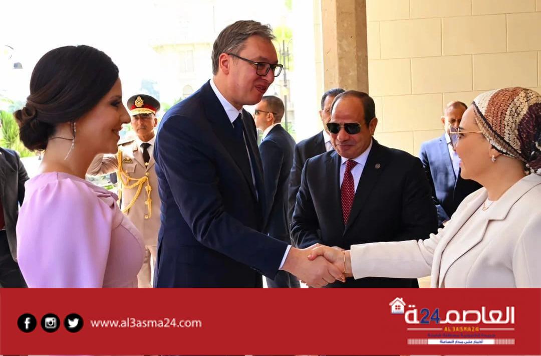 وكان الرئيس عبد الفتاح السيسي، وقرينته السيدة انتصار السيسي، قد استقبلا، اليوم السبت، الرئيس الصريبي وقرينته بقصر الاتحادية