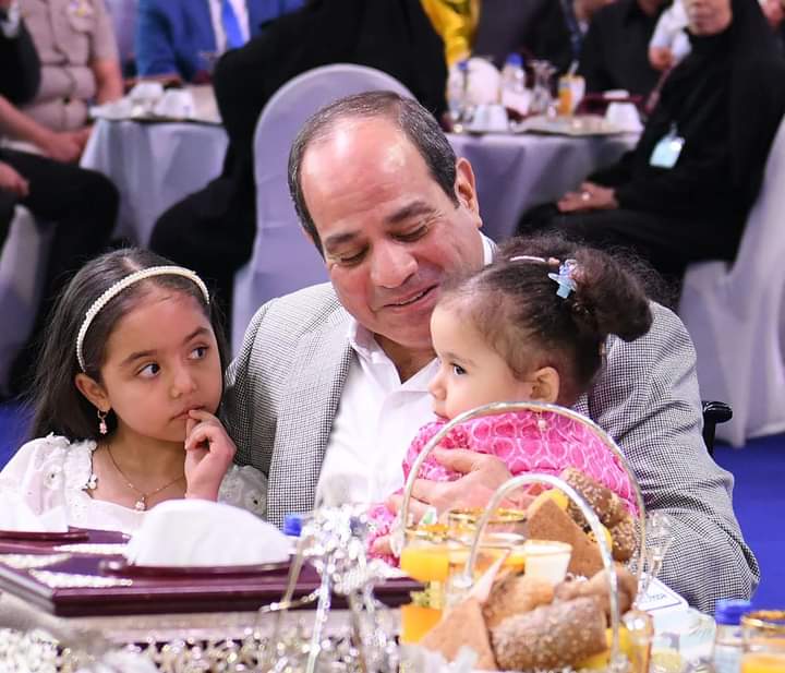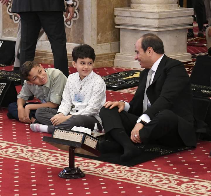 وحرص الرئيس عبد الفتاح السيسي، علي مصافحة الأطفال، قبل أداء صلاة عيد الفطر، فى مسجد المشير طنطاوى.