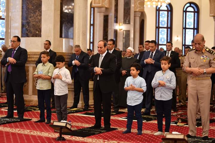 أدى الرئيس عبد الفتاح السيسى رئيس الجمهورية صلاة عيد الفطر المبارك، بمسجد المشير طنطاوى، بحضور لفيف من كبار رجال الدولة والمسؤولين