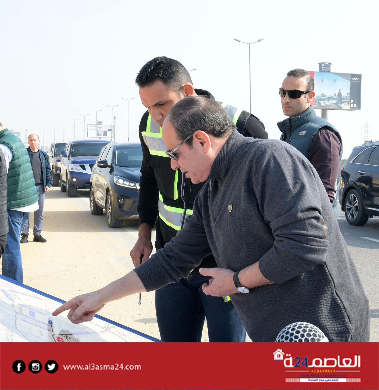 تفقد الرئيس عبد الفتاح السيسى، اليوم الجمعة، مشروعات الطرق والمحاور الجديدة التي تم تنفيذها والجاري العمل بها بمنطقة القاهرة الجديدة، والتي تستهدف تطوير إنشاء شبكة طرق جديدة للاستفادة من مساحة 15 ألف فدان ما بين جنوب طريق السخنة والقاهرة الجديدة في مختلف المجالات الاقتصادية والعمرانية بما يزيد الدخل القومي ويوفر فرص عمل في القطاعات المتنوعة