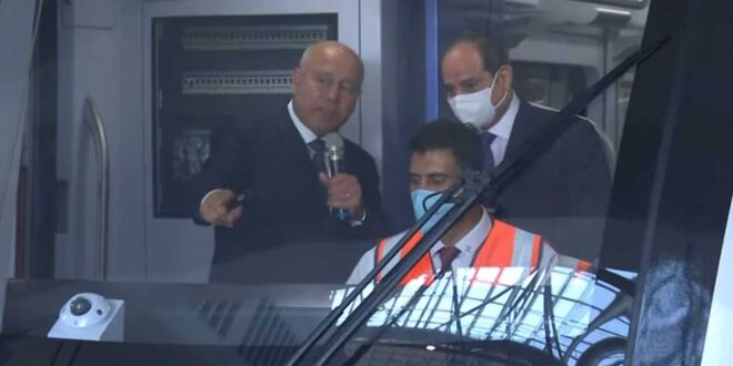 الرئيس السيسي يتفقد القطار الكهربائي LRT بمحطة عدلي منصور المركزية : بحضور رئيس الوزراء ووزير النقل