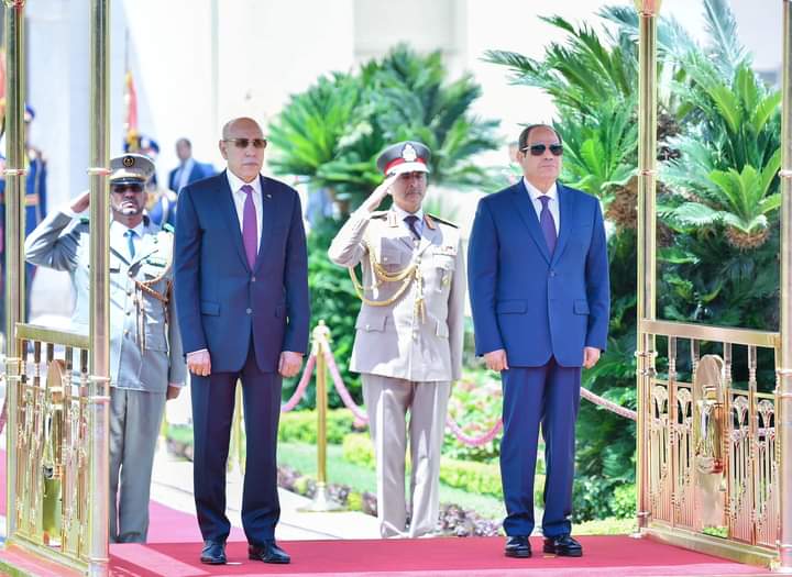 استقبل السيد الرئيس عبد الفتاح السيسي، بمطار القاهرة الدولي، الرئيس محمد ولد الغَزْواني، رئيس الجمهورية الإسلامية الموريتانية، في مستهل زيارته لمصر التي تمتد لثلاثة أيام، ثم اصطحب سيادته الرئيسَ الموريتاني إلى قصر الاتحادية، حيث أقيمت مراسم الاستقبال الرسمي وتم استعراض حرس الشرف وعزف السلامين الوطنيين