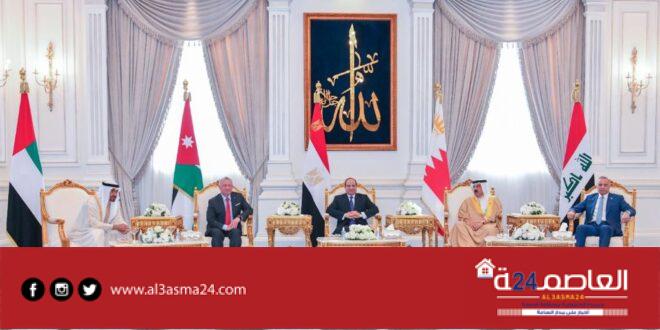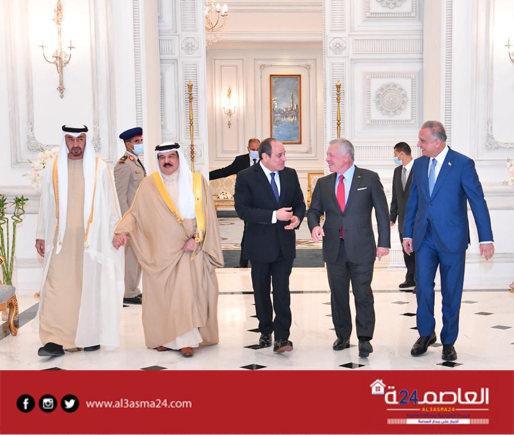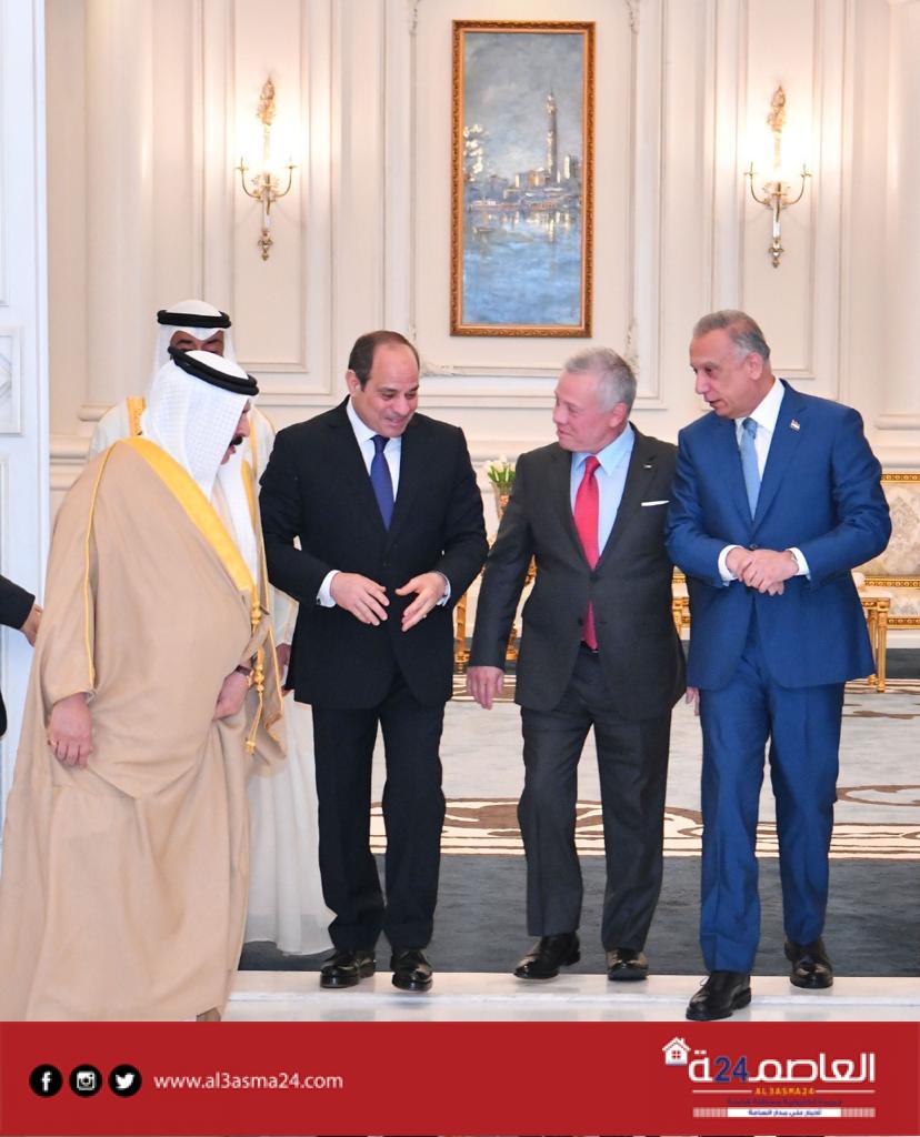 استقبل قبل قليل الرئيس عبدالفتاح السيسي اليوم الإثنين، بمطار العلمين يرافقه الشيخ محمد بن زايد آل نهيان رئيس الإمارات، كلاً من جلالة الملك عبد الله الثاني بن الحسين، ملك الأردن، وجلالة الملك حمد بن عيسى آل خليفة، ملك البحرين، ومصطفى الكاظمي، رئيس الوزراء العراقي