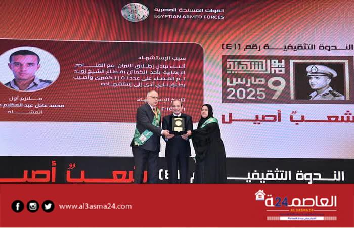 شهد الرئيس عبد الفتاح السيسي رئيس الجمهورية اليوم الاربعاء الندوة التثقيفية الحادية والأربعين، والتي أقامتها القوات المسلحة بمناسبة الاحتفال بيوم الشهيد والمحارب القديم تحت عنوان “شعب أصيل”، وذلك بمركز المنارة الدولي للمؤتمرات بالقاهرة الجديدة، وبحضور كبار رجال الدولة وقادة القوات المسلحة والشرطة، بالإضافة إلى أهالي وأسر شهداء القوات المسلحة والشرطة