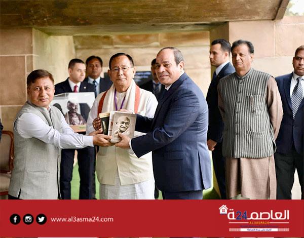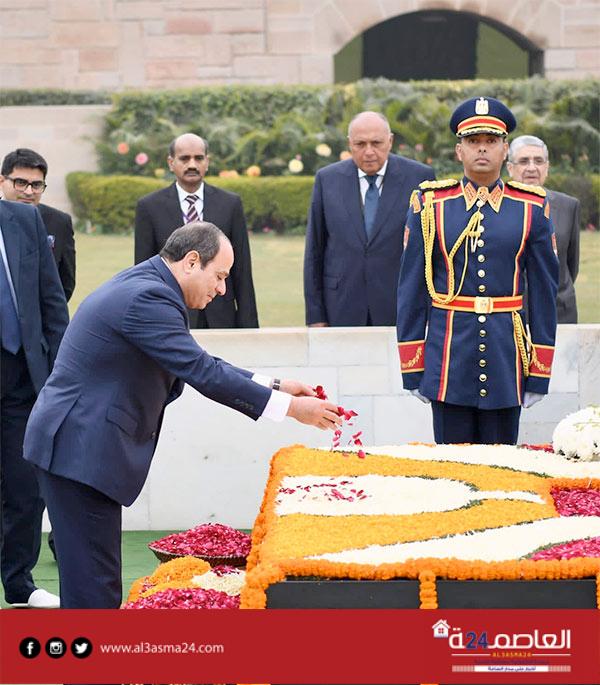 ودون الرئيس السيسي، كلمة في دفتر كبار الزوار لدى زيارة ضريح غاندي في نيودلهي، قال فيها: “يُسعدني أن أُعبِّر عن خالص الاعتزاز بزيارة ضريح الزعيم الهندي الراحل، المهاتْمَا غاندي، الذي شَكَّلَ علامةً فارقة في التاريخ الإنساني بتجسيده لمبادئ وقيم العدالة والسلام والمُساواة ونبذ العنف، وكذلك مواقفه الوطنية الشجاعة وانحيازه غير المشروط لخيار المقاومة السلمية