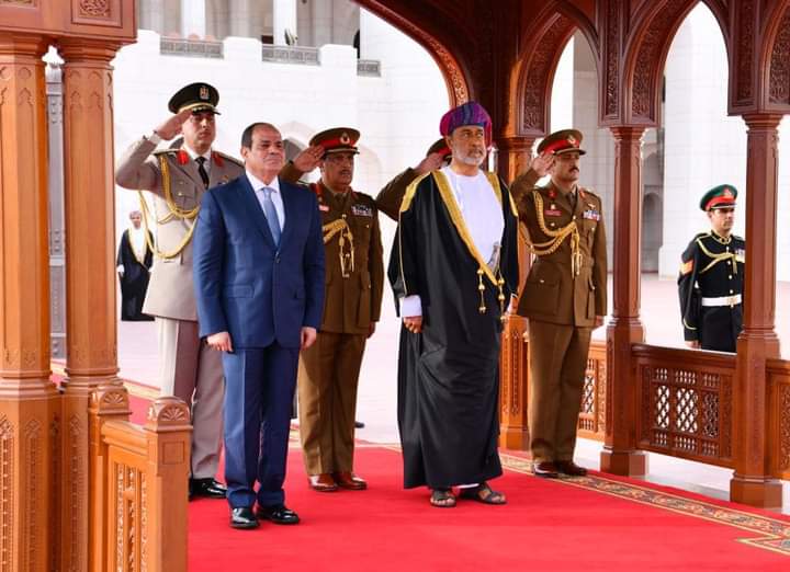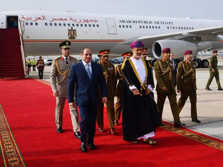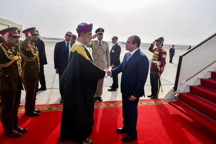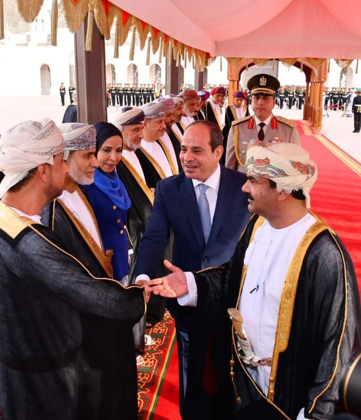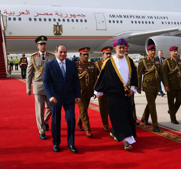 التقى الرئيس عبد الفتاح السيسي اليوم، في قصر العلم العامر بالعاصمة العمانية مسقط، مع جلالة السلطان هيثم بن طارق آل سعيد، سلطان عمان، حيث أقيمت لسيادته مراسم الاستقبال الرسمي، وتم عزف السلامين الوطنيين واصطفاف حرس الشرف.”