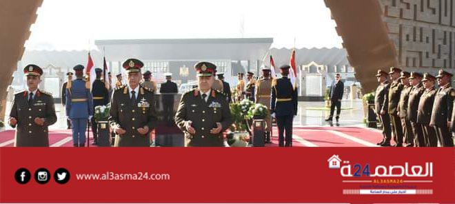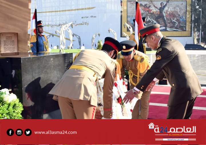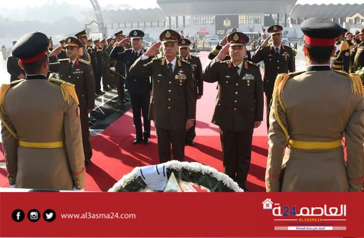 وقام القائد العام للقوات المسلحة يرافقه الفريق / أسامة عسكر رئيس أركان حرب القوات المسلحة وقادة الأفرع الرئيسية بوضع باقة من الزهور على النصب التذكارى للجندى المجهول ، كما عزفت الموسيقات العسكرية سلام الشهيد ، ثم توجه لقراءة الفاتحة على قبر الزعيم الراحل محمد أنور السادات
