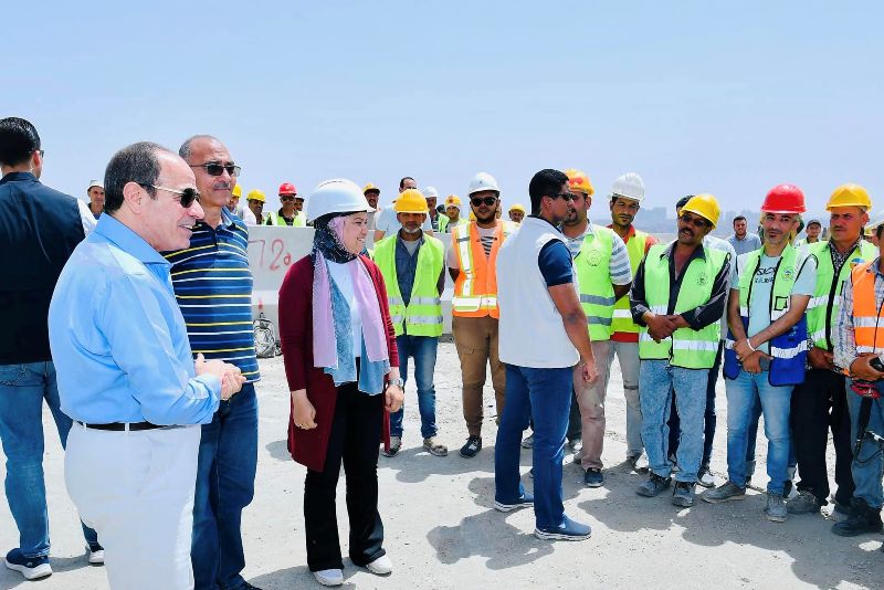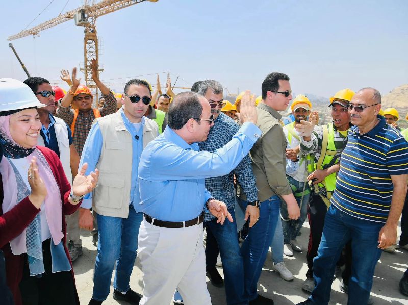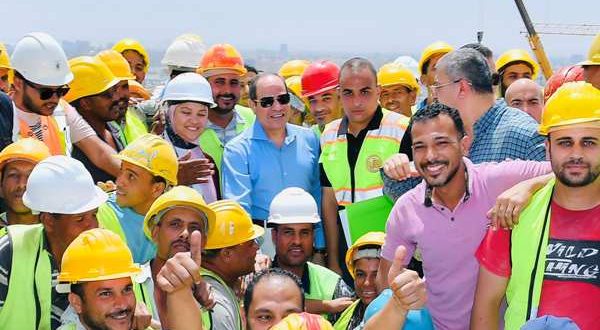 الرئيس السيس يلتقط الصور التذكارية مع العاملين خلال تفقده المحاور والطرق اليوم الجمعة