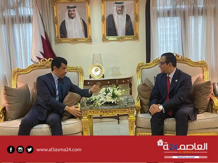 استقبل سعاده السفير سالم مبارك أل شافي سفير دولة قطر الشقيقة بالقاهرة المستشار علاء عابد المحامي بالنقض والمستشار القانوني لسفارة الإمارات العربية المتحدة ” وذلك بمقر بسفارة دولة قطر بالقاهرة بحضور الدكتور محمد معيط وزير المالية وذلك بمناسبة مرور عامين على تولي السفير سالم مبارك أل شافى سفير دولة قطر بالقاهرة