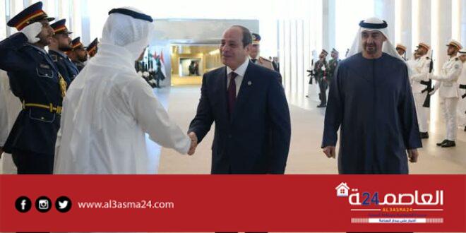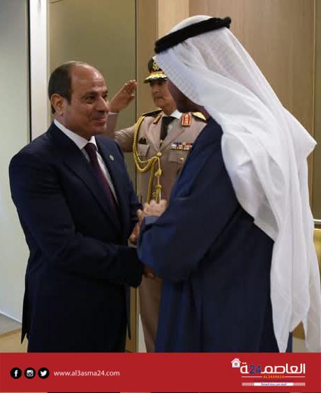 استقبل صاحب السمو الشيخ محمد بن زايد، رئيس دولة الإمارات العربية المتحدة، اليوم الأربعاء الرئيس عبدالفتاح السيسي في مطار أبوظبي الدولي. وبعد مراسم الاستقبال، توجه الرئيسان إلى قصر الشاطئ، حيث عقدا اجتماعًا تناول العلاقات الثنائية بين البلدين الشقيقين وسبل تعزيزها بما يحقق مصالح الدولتين وتطلعات شعبيهما الشقيقين، وبشكل خاص في المجالات الاقتصادية والتجارية والاستثمارية