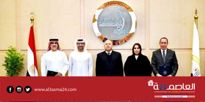 الفريق كامل الوزير وسفيرة الإمارات بالقاهرة يشهدان توقيع مذكرة تفاهم بين مجموعة موانىء أبو ظبى والشركة القابضة للنقل البحرى