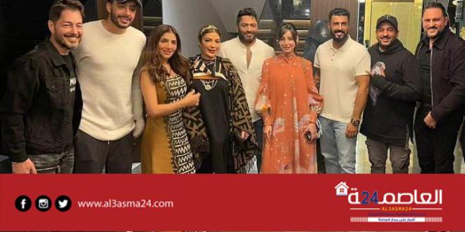 وضمت الصورة كل من الفنانة أصالة والفنان تامر حسني وطليقته الفنانة بسمة بوسيل ، والفنان أحمد زاهر وعصام السقا .