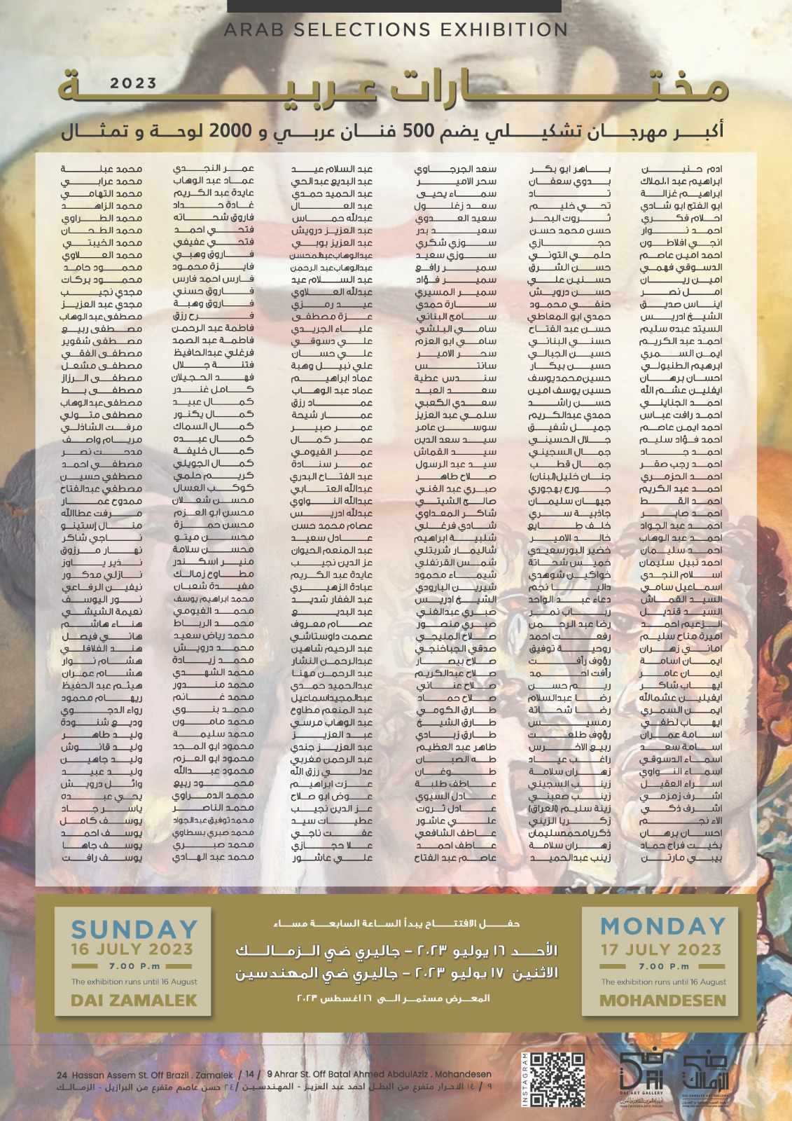 تستمر فعاليات معرض “مختارات عربية” حتى 16 أغسطس المقبل بفرعي جاليري ضي الزمالك، و ضي المهندسين، تتخللها نقاشات وحوارات فنية حول أعمال كبار التشكيليين الحاضرة بالمعرض، بجانب تبادل الخبرات بين طلاب الفنون وأساتذة الفن التشكيلي.