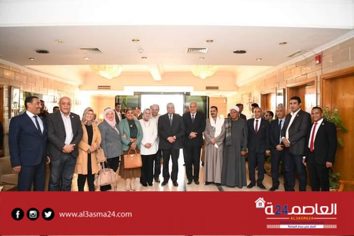 التقي المهندس أشرف رشاد الشريف الأمين العام لحزب مستقبل وطن وممثل الأغلبية البرلمانية بمجلس النواب اليوم السبت باللواء هشام آمنة وزير التنمية المحلية علي هامش زيارته لتلق المحافظة مرافقا محافظ قنا اللواء أشرف الداودي