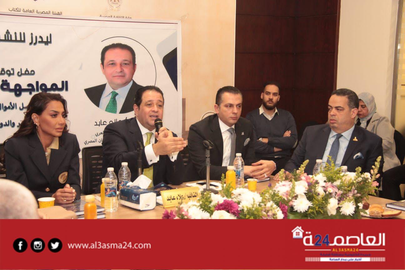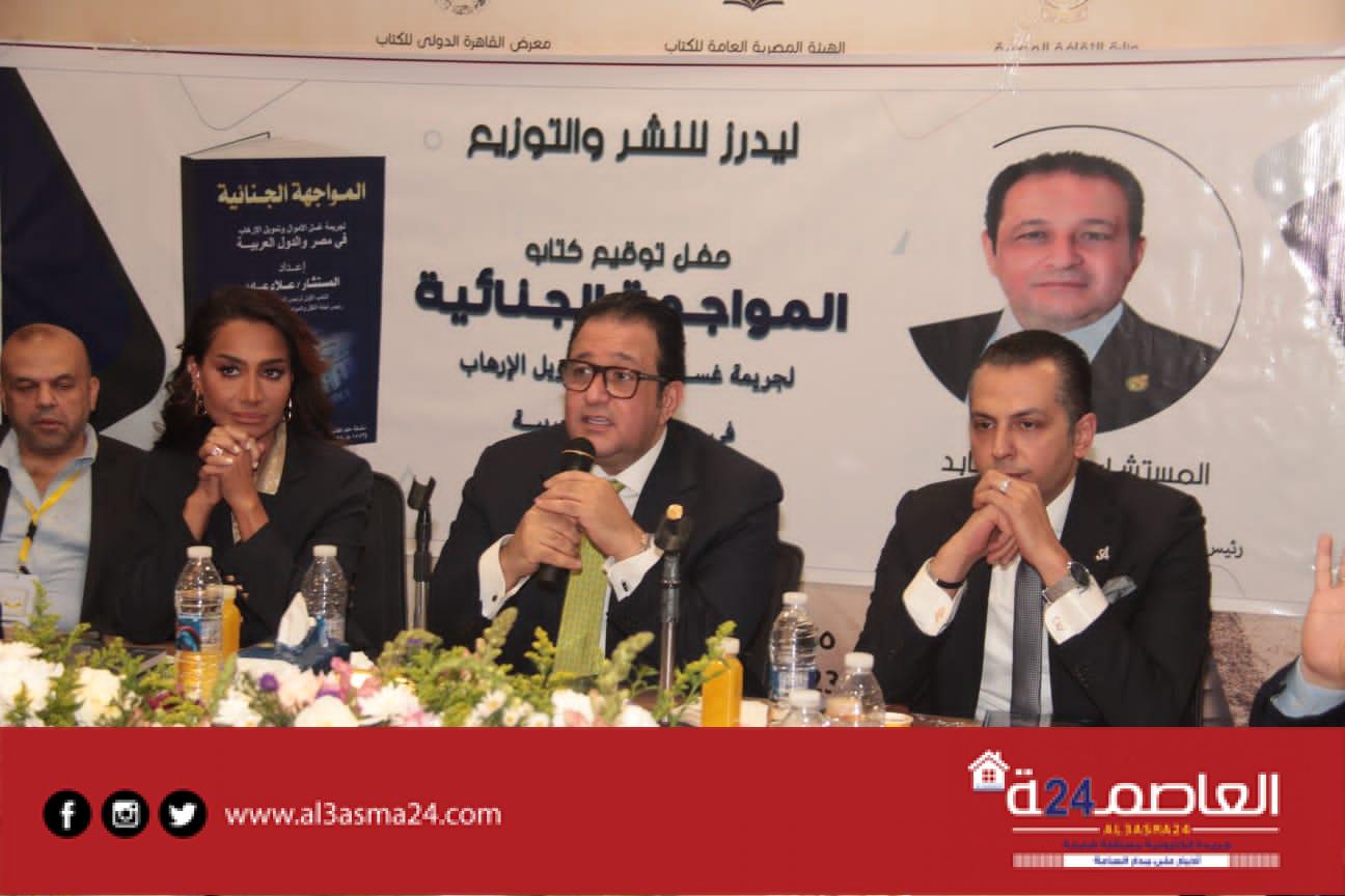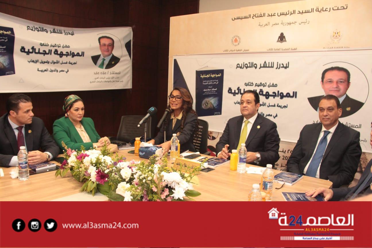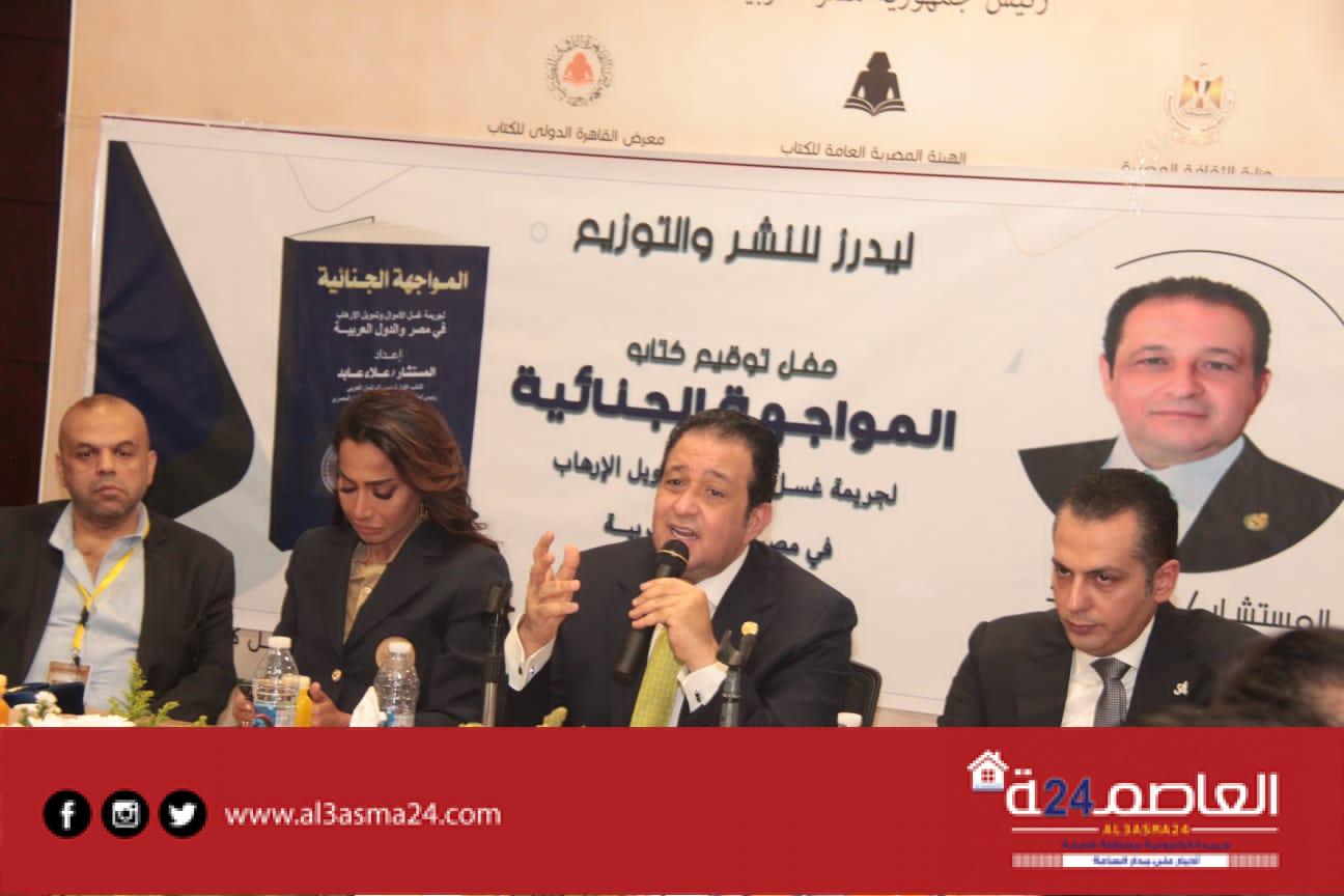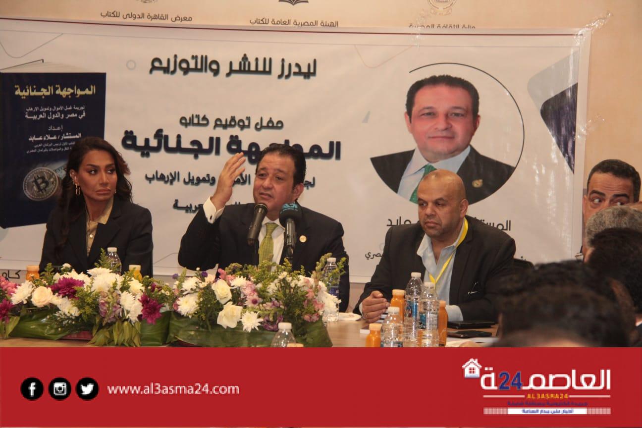 وقع مساء اليوم الأربعاء النائب البرلماني المستشار علاء عابد المحامي بالنقض ورئيس لجنة النقل والمواصلات بمجلس النواب كتابه الجديد المواجهة الجنائية لجريمة غسيل الأموال وتمويل الارهاب وذلك بمعرض القاهرة الدولي للكتاب بالتجمع الخامس بحضور نحو 50 نائب ونائبة من مجلسي النواب والشيوخ