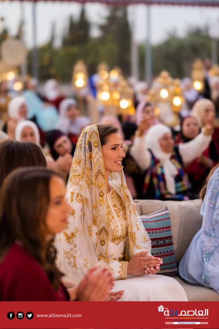 وتخلل الحفل رسم بالحناء وزفة العروس وأغان وأهازيج تراثية وشعبية أردنية وسعودية، شارك في أدائها العديد من الفنانات، وفقا لوكالة الأنباء الأردنية (بترا)