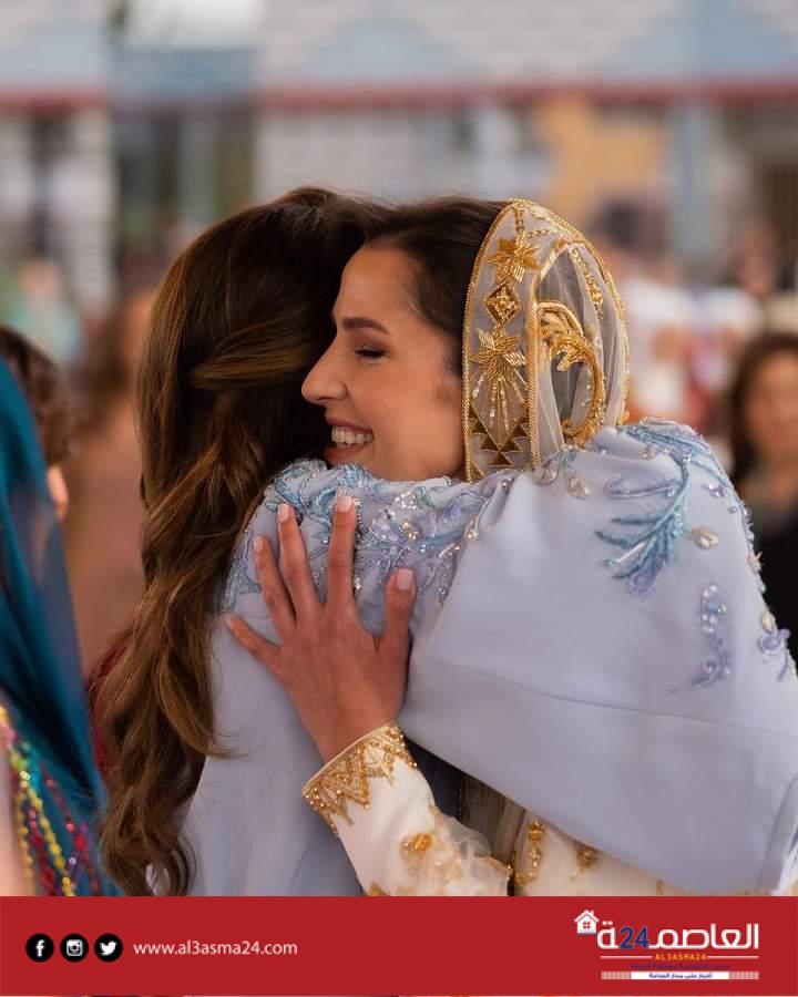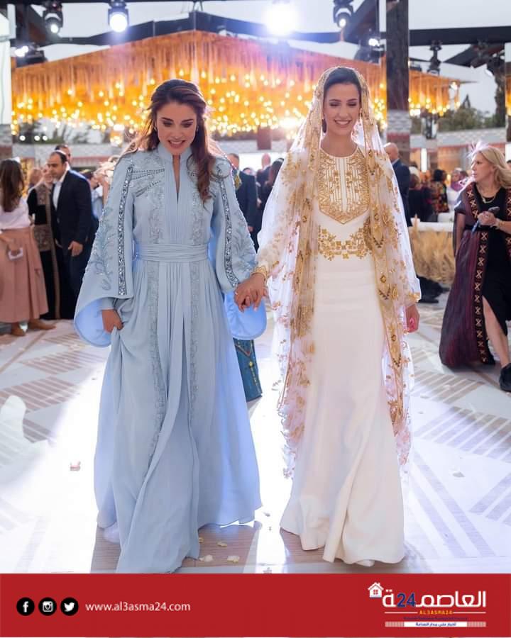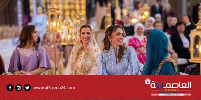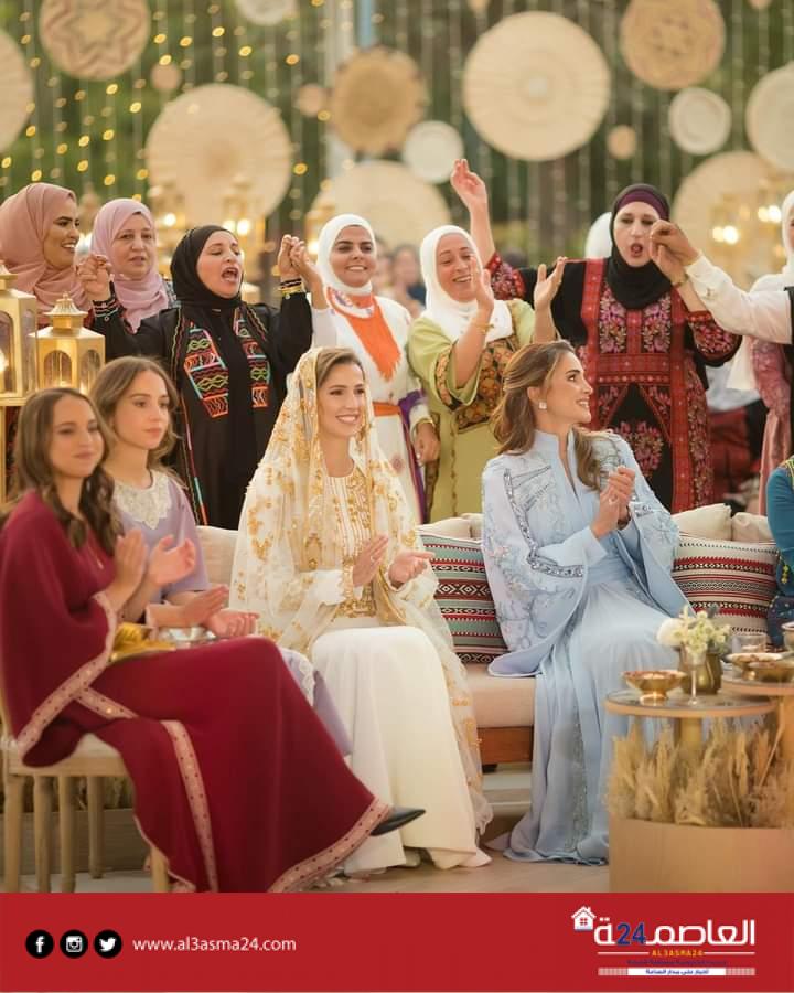 ورحبت الملكة رانيا بالحضور وقالت «أهلاً وسهلاً فيكم، مبسوطة إنكم هون حتى تشاركونا فرحتنا». وتابعت قائلة «وأخيراً صار عندي كِنة! بس مش أي كِنة ما شاء الله عليها.. رجوة، يعني ما بعرف في أحلى أو ألذ منها العروس؟ جد غلاوتها من غلاوة إيمان وسلمى