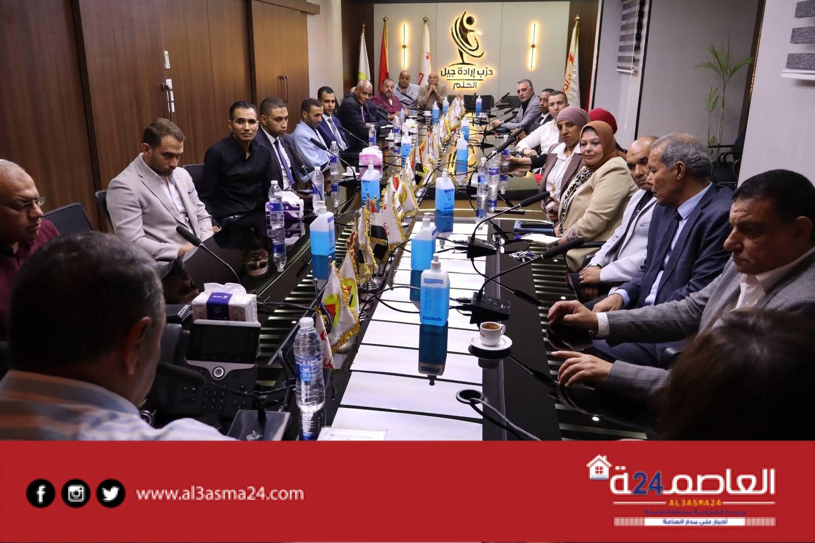 نظم حزب_إرادة_جيل، برئاسة النائب تيسير مطر، وكيل لجنة الصناعة والتجارة بمجلس الشيوخ اجتماعا هاما مع كافة الكوادر الراغبة في الترشح لانتخابات مجلس_النواب_2025، من عدد من المحافظات، بحضور رئيس الحزب وأعضاء لجنة تلقي رغبات الترشح للانتخابات.