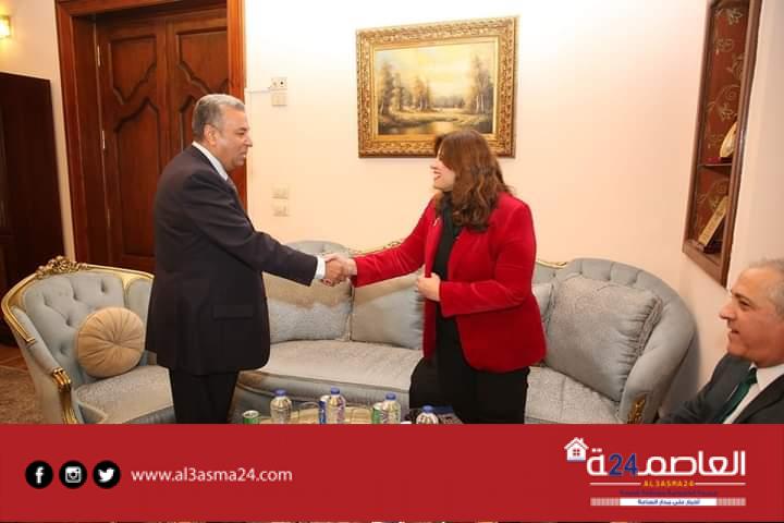 رئيس الهيئة الوطنية للصحافة خلال استقباله وزيرة الهجرة