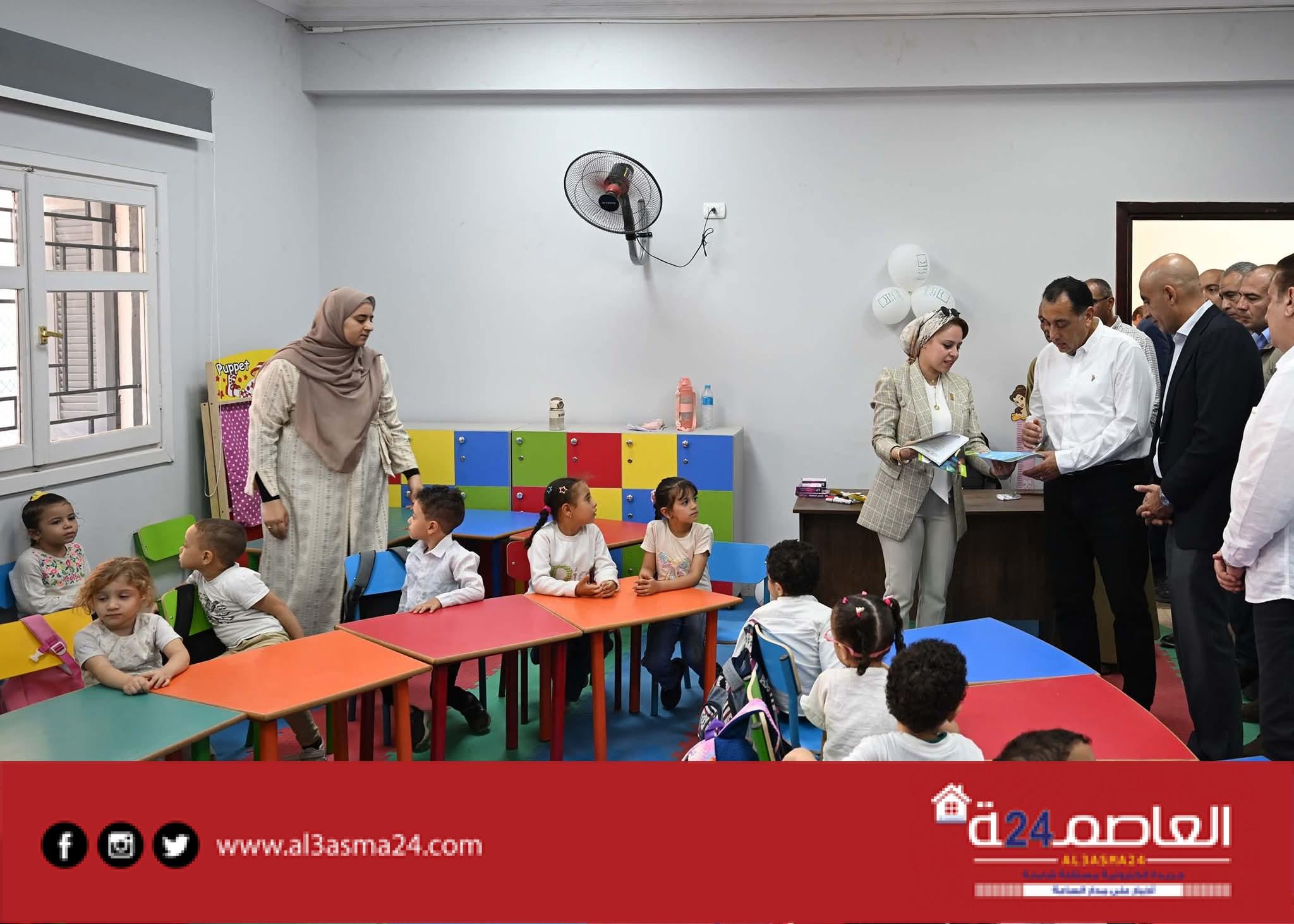 واستمع رئيس الوزراء إلى شرح من الدكتورة/ أمل غنيم، مديرة مركز تنمية الأسرة والطفل، التي أوضحت أن المركز يشمل عدد 6 فصول؛ مُقسمة بواقع 3 فصول حضانة للأطفال في المرحلة العمرية من 2 وحتى 4 سنوات، و3 فصول رياض الأطفال للمرحلة العمرية من 4 وحتى 6 سنوات