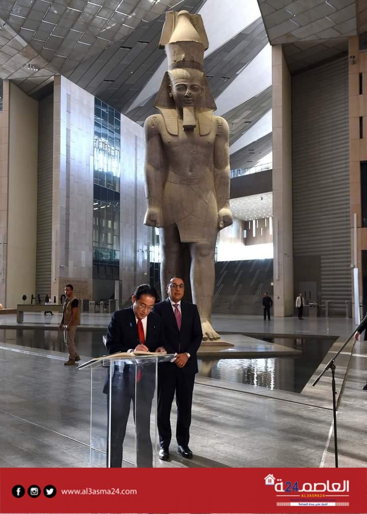 استقبل الدكتور مصطفى مدبولي، رئيس مجلس الوزراء، مساء اليوم، السيد/”فوميو كيشيدا”، رئيس وزراء اليابان، بالمتحف المصري الكبير، بحضور اللواء عاطف مفتاح، المشرف العام على مشروع المتحف المصري الكبير، والدكتور مصطفى وزيري، الأمين العام للمجلس الأعلى للآثار.