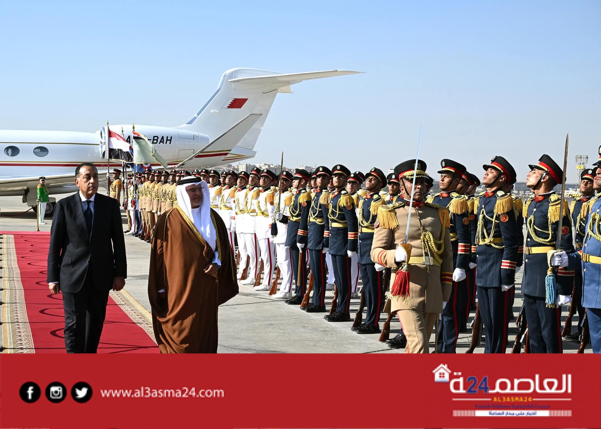 ولدى وصوله مطار القاهرة الدولي، أُقيمت مراسم استقبال رسمية لولي عهد مملكة البحرين الشقيقة والوفد المرافق له. وشهدت مراسم الاستقبال عزف السلاميْن الوطنيين لجمهورية مصر العربية ومملكة البحرين الشقيقة، أعقبه استعراض حرس الشرف، وذلك بحضور السفيرة/ فوزية بنت عبد الله زينل، سفيرة مملكة البحرين لدى مصر
