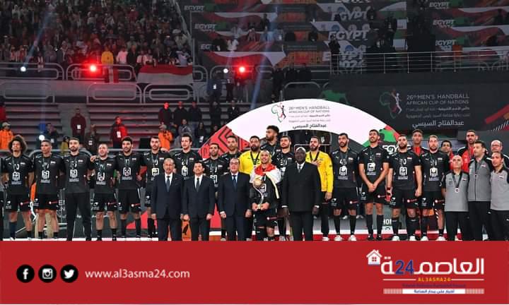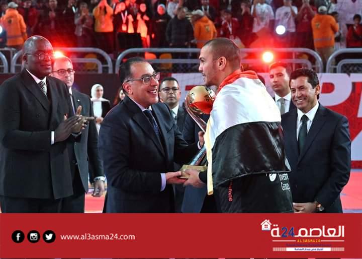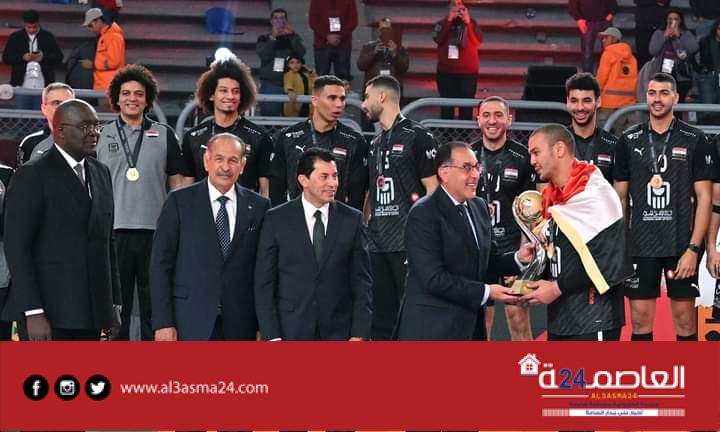 وفي ختام فعاليات حفل النسخة الـ 26 من بطولة كأس أمم أفريقيا لكرة اليد للرجال 2024، قام الدكتور مصطفى مدبولي بتسليم كأس البطولة، إلى المنتخب المصري الفائز بلقب بطولة كأس أمم أفريقيا لليد للرجال 2024، مقدماً لهم التهنئة بهذا الفوز المستحق الذي يُعد الثالث على التوالي ببطولة كأس أمم أفريقيا، كما يُعد اللقب الأفريقي التاسع فى تاريخه، مشيداً بالأداء المتميز والرجولي لأبطال المنتخب المصري، وجهازه الفني، الذين حرصوا على اسعاد الشعب المصري بحصولهم على هذه البطولة المؤهلة إلى أولمبياد باريس 2024. كما حرص رئيس الوزراء على توجيه الشكر للسادة المسئولين عن التنظيم باستاد القاهرة الدولي لما بذلوه من جهد مقدر أسهم في خروج البطولة بهذه الصورة المشرفة