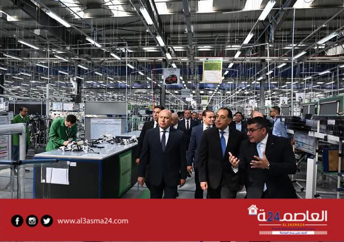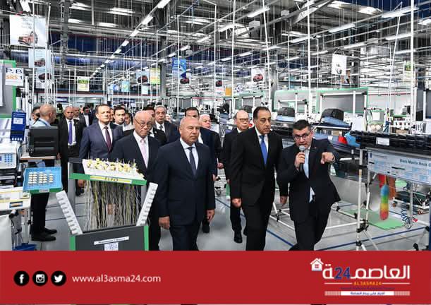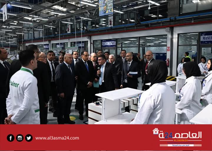 توجه الدكتور مصطفى مدبولي، رئيس مجلس الوزراء، لإزاحة الستار إيذانا بافتتاح المصنع الجديد لشركة “إس إي وايرينج سيستمز إيجيبت ش.م.م”، بمدينة العاشر من رمضان، ثم قام بجولة تفقدية بأرجاء المصنع للتعرف على مراحل التصنيع المختلفة