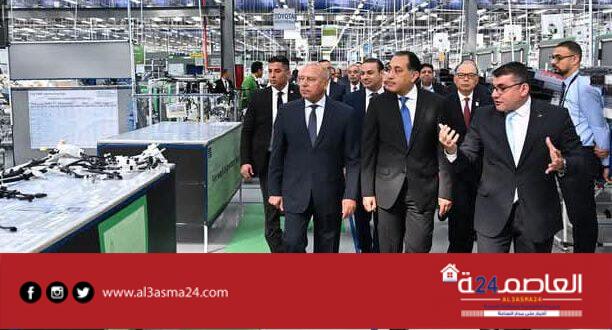 توجه الدكتور مصطفى مدبولي، رئيس مجلس الوزراء، لإزاحة الستار إيذانا بافتتاح المصنع الجديد لشركة “إس إي وايرينج سيستمز إيجيبت ش.م.م”، بمدينة العاشر من رمضان، ثم قام بجولة تفقدية بأرجاء المصنع للتعرف على مراحل التصنيع المختلفة