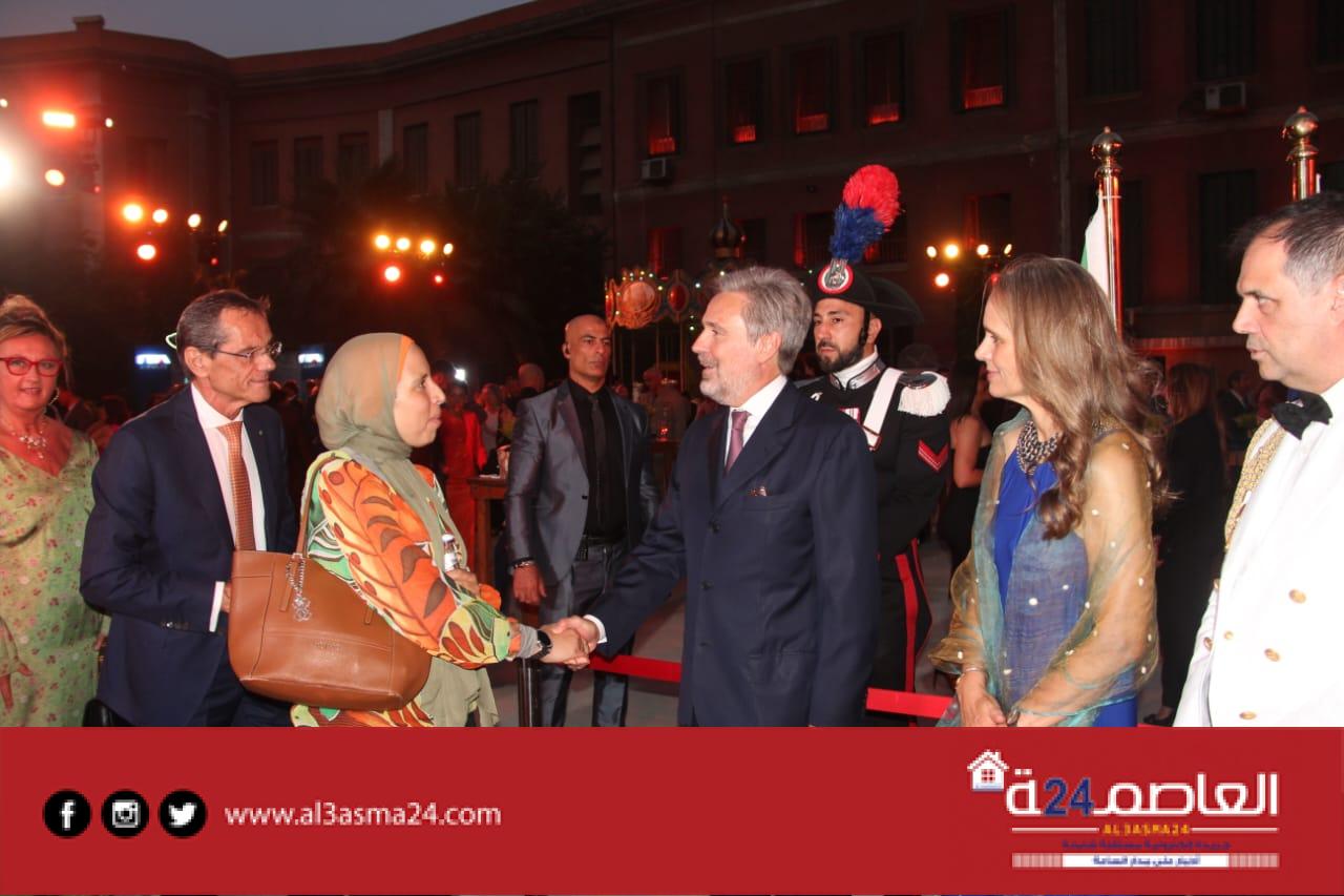 اقامت سفارة إيطاليا بالقاهرة مساء اليوم الثلاثاء حفلا دبلومسيا بمناسبة اليوم القومي للبلاد وذلك بحضور عدد كبير من الشخصيات العامة وكبار رجال الدولة فضلا عن سفراء الدول يتقدمهم الدكتور | خالد عبد الغفار نائب رئيس مجلس الوزراء وزير الصحة والمهندس محمود عصمت وزير الكهرباء والدكتور شريف فاروق وزير التموين والمهندس محمد شيمي وزير قطاع الأعمال والدكتور | أحمد فؤاد هنو وزير الثقافة والمستشار | محمود عتمان ” أمين عام مجلس الشيوخ والمستشار | سامح عبد الحكم رئيس محكمة جنايات أمن الدولة وحرمه والنائب ورجل الأعمال أحمد أبو هشيمة نائب رئيس حزب الشعب الجمهوري والدكتور ياسر عبد المقصود رئيس امانة ريادة الاعمال المركزية بحزب الجبهة الوطنية والنائبة سولاف درويش