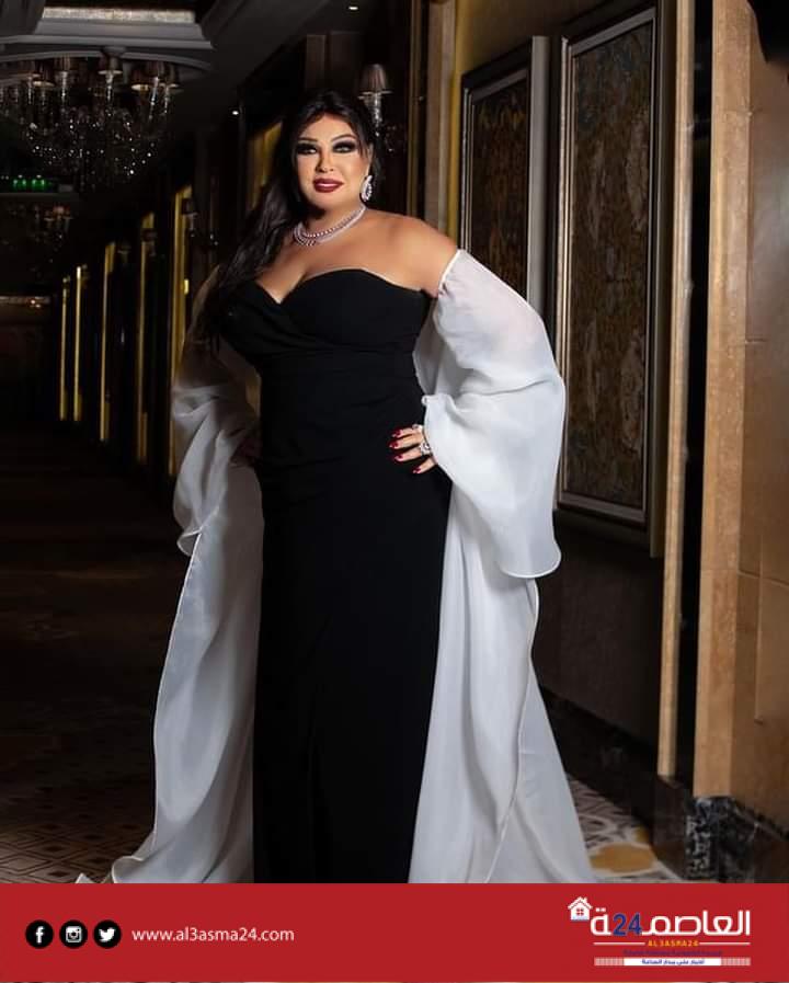 ظهرت فيفي بإطلالة كلاسيكية حيث اختارت ارتداء فستان أسود طويل ذو فتحة من الصدر، وكم أبيض منفصل طويل