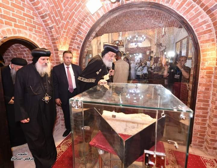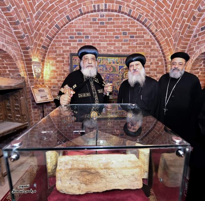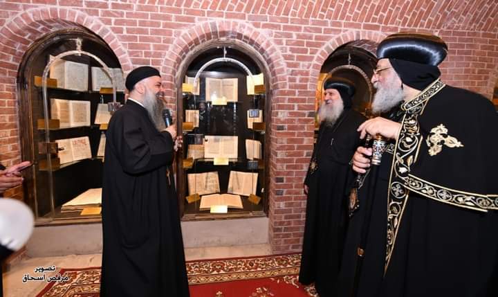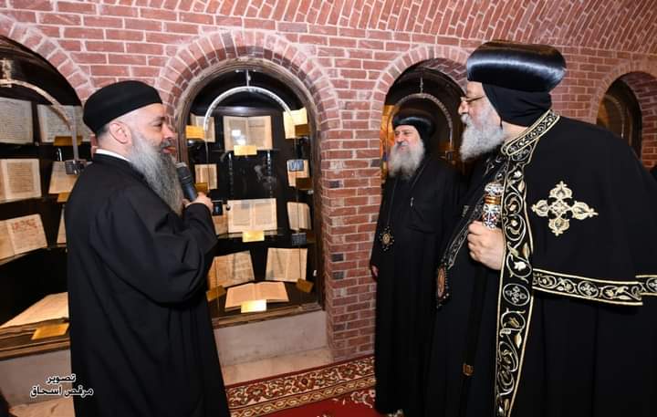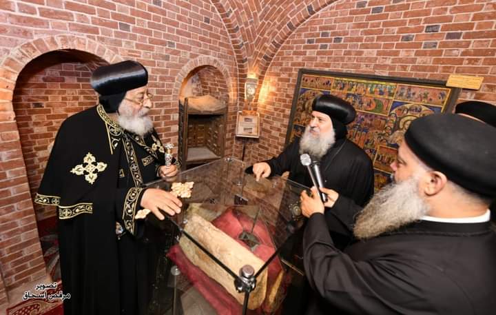 وتفقد قداسة البابا، لدى وصوله الكنيسة، متحف المقتنيات الأثرية، والذي يعد من أبرز ما يحويه الحجر المنطبع عليه أثر قدم الطفل يسوع، وأيقونة مرسومة على “جلد الغزال” تحوي صورًا لبداية الخليقة وحتى مجئ السيد المسيح، إلى جانب عددًا من المخطوطات النادرة.