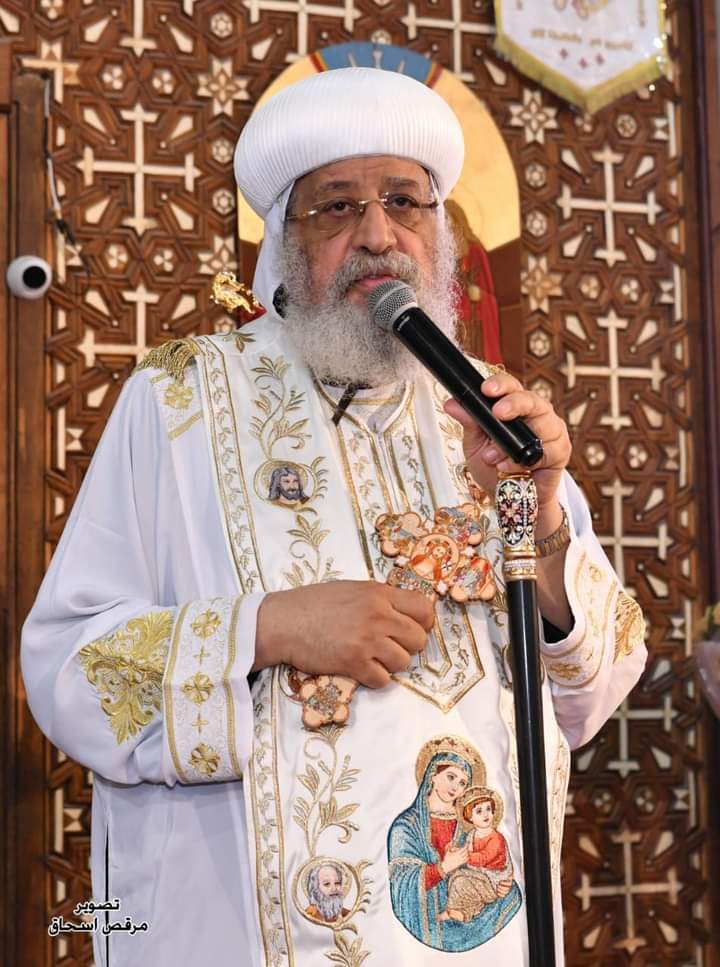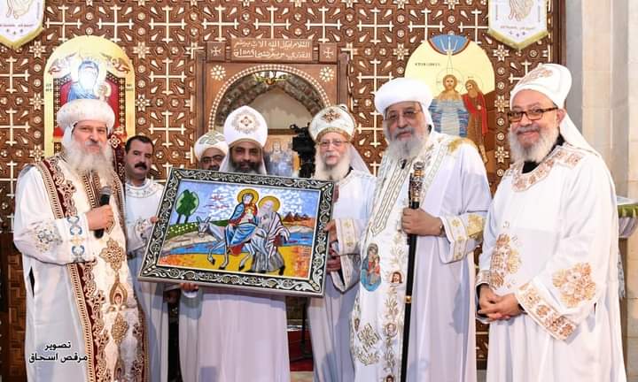 وحرص قداسته في بداية العظة على تهنئة نيافة الأنبا ماركوس أسقف إيبارشية دمياط وكفر الشيخ والبراري، بالذكرى الثامنة لسيامته التي تحل اليوم، وقدم نيافته ومجمع كهنة الإيبارشية هدية تذكارية لقداسة البابا عبارة عن أيقونة “العائلة المقدسة” مصنوعة من الزجاج المعشق، بيد راهبات دير القديسة دميانة بالبراري.