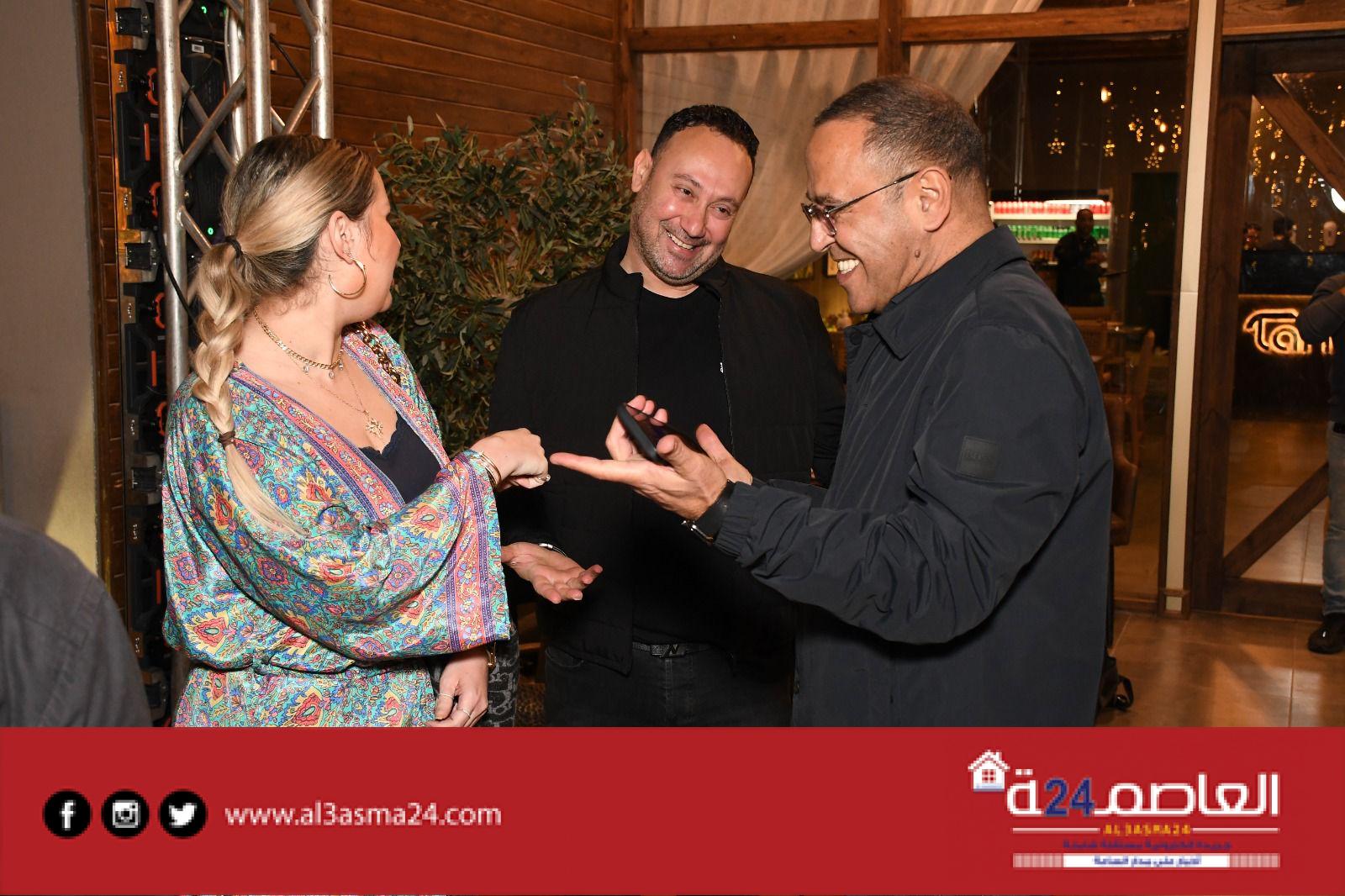 وبعض من النجوم الشابة المشاركين فى مسرحية جريما فى المعادى ومسرحية صباحية مباركة والمؤلفين أحمد عبد الوهاب وكريم سامي ومخرج الأكشن محمود طاحون وذلك داخل مطعمه الخاص .