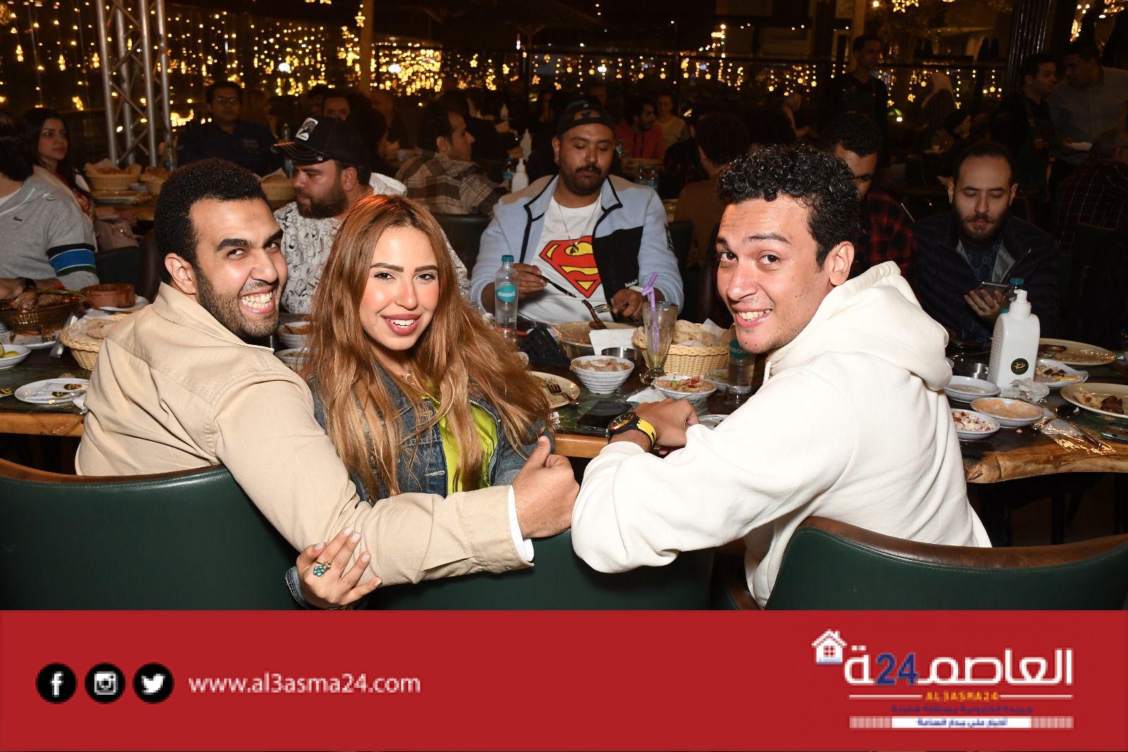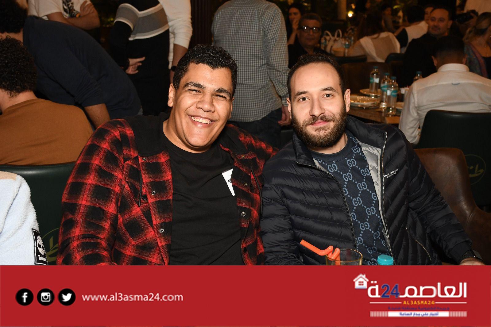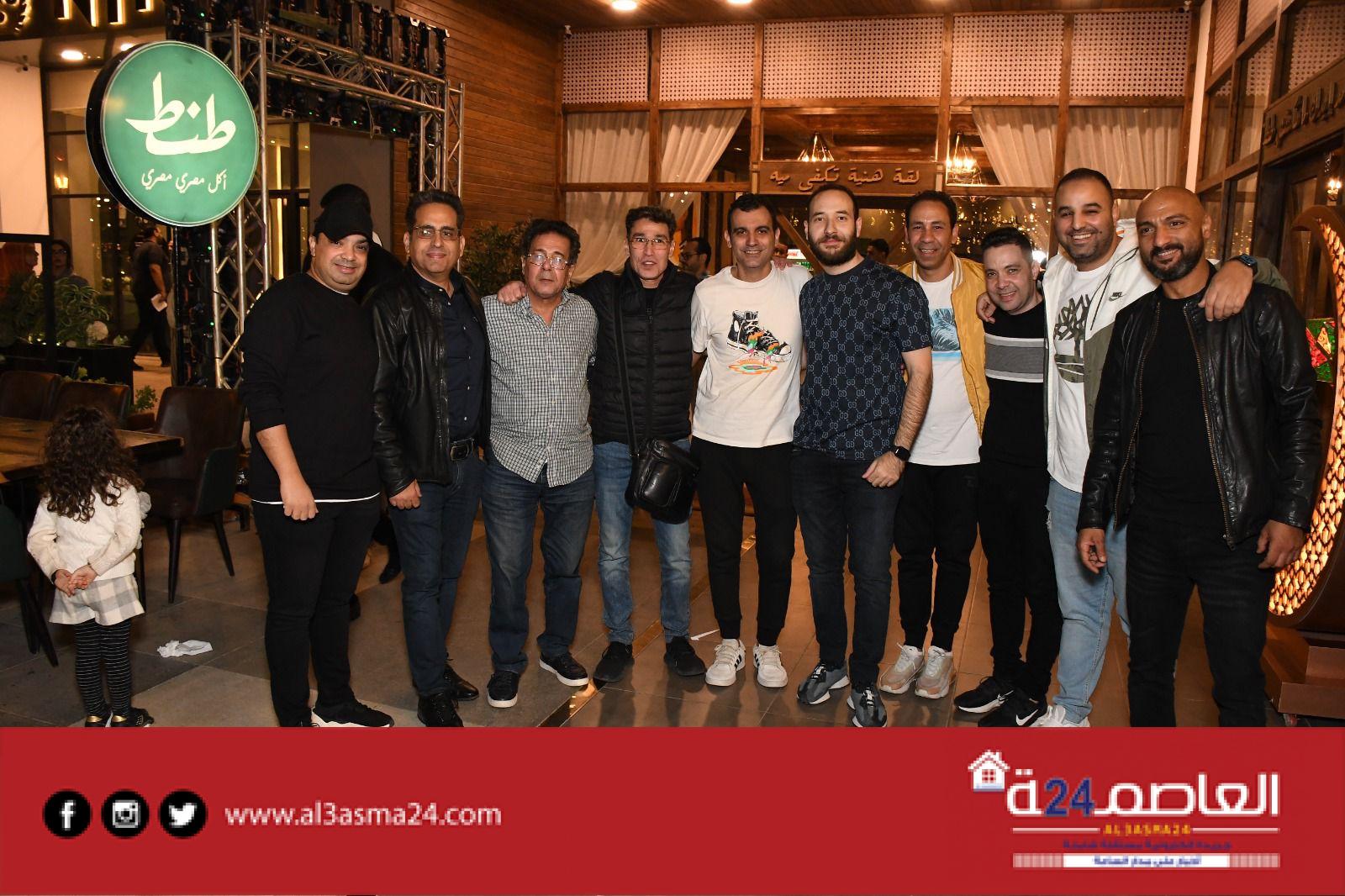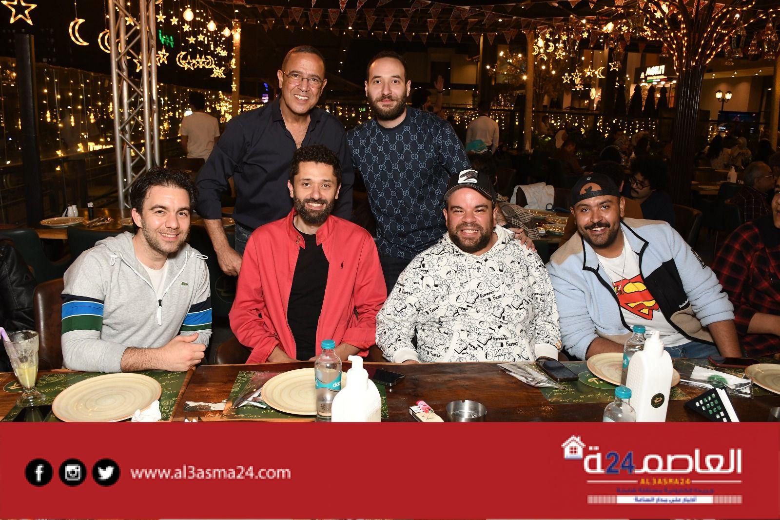 وبعض من النجوم الشابة المشاركين فى مسرحية جريما فى المعادى ومسرحية صباحية مباركة والمؤلفين أحمد عبد الوهاب وكريم سامي ومخرج الأكشن محمود طاحون وذلك داخل مطعمه الخاص .