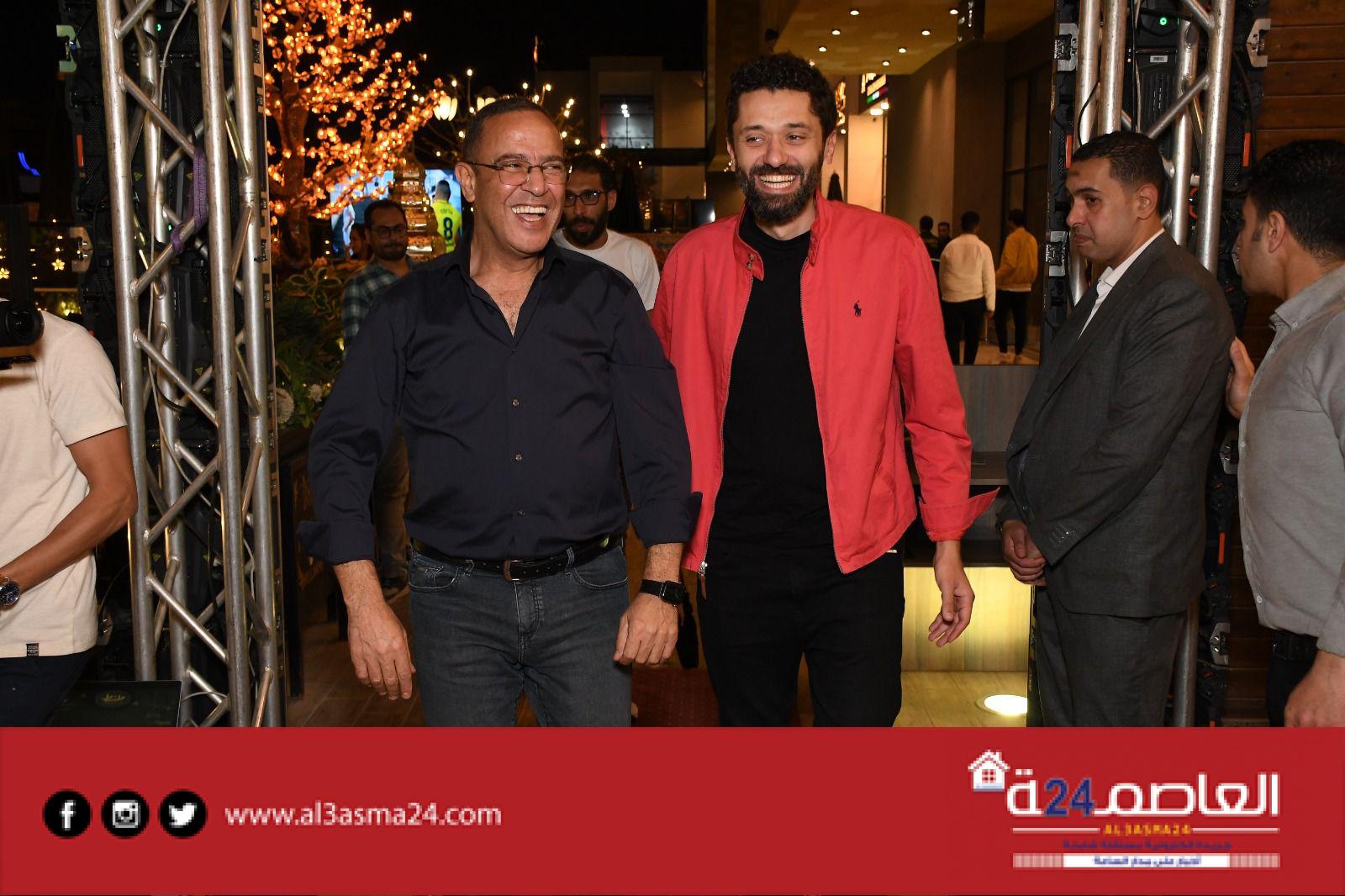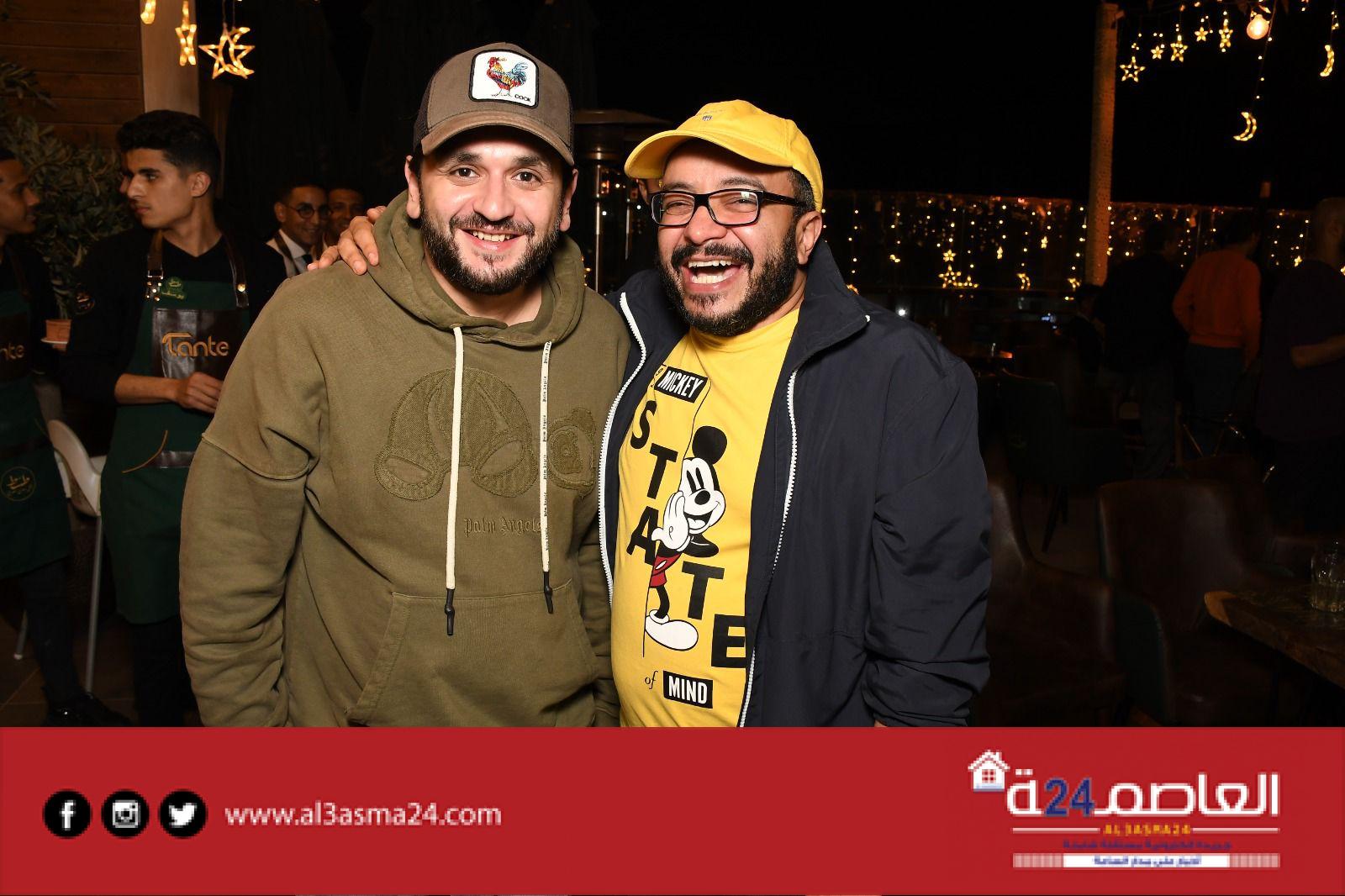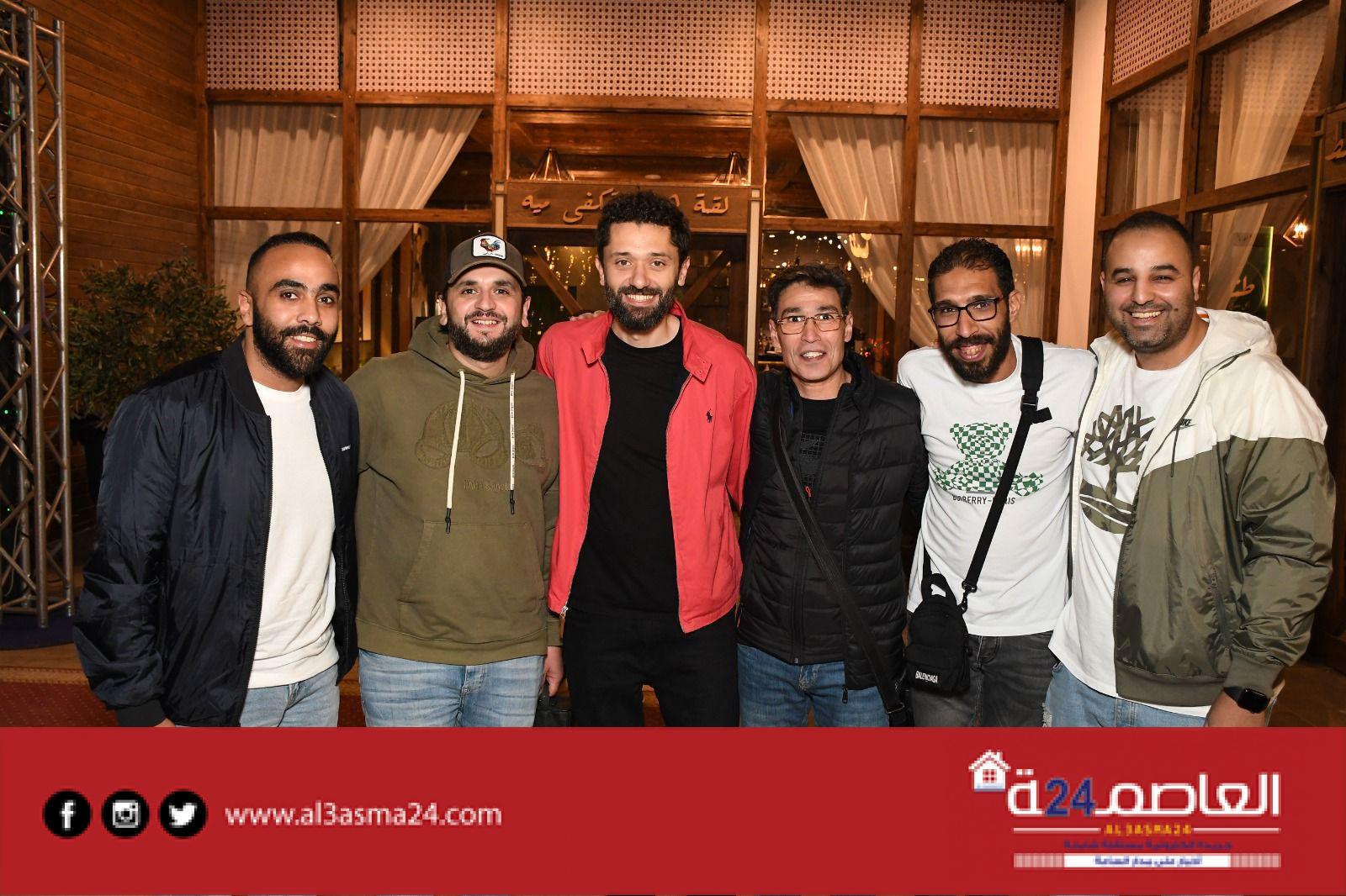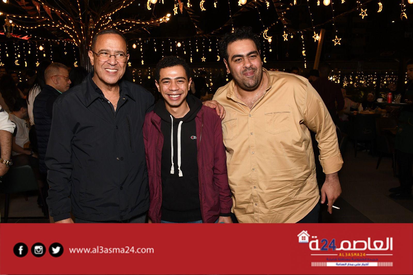 وبعض من النجوم الشابة المشاركين فى مسرحية جريما فى المعادى ومسرحية صباحية مباركة والمؤلفين أحمد عبد الوهاب وكريم سامي ومخرج الأكشن محمود طاحون وذلك داخل مطعمه الخاص .