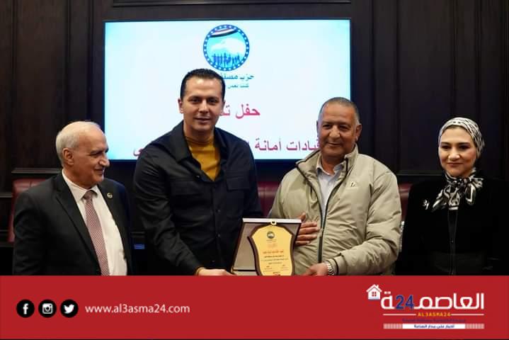 وعلي هامش الإجتماع، قدم الدكتور سامي هاشم، درع الأمانة للنائب أحمد عبد الجواد، تقديرا لدوره البارز والمشرف في تنظيم وتوجيه الحزب حتي ظهر بهذا الشكل المشرف